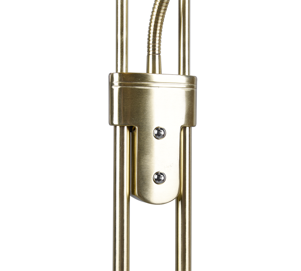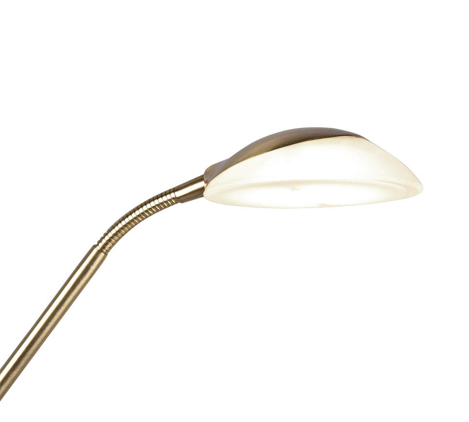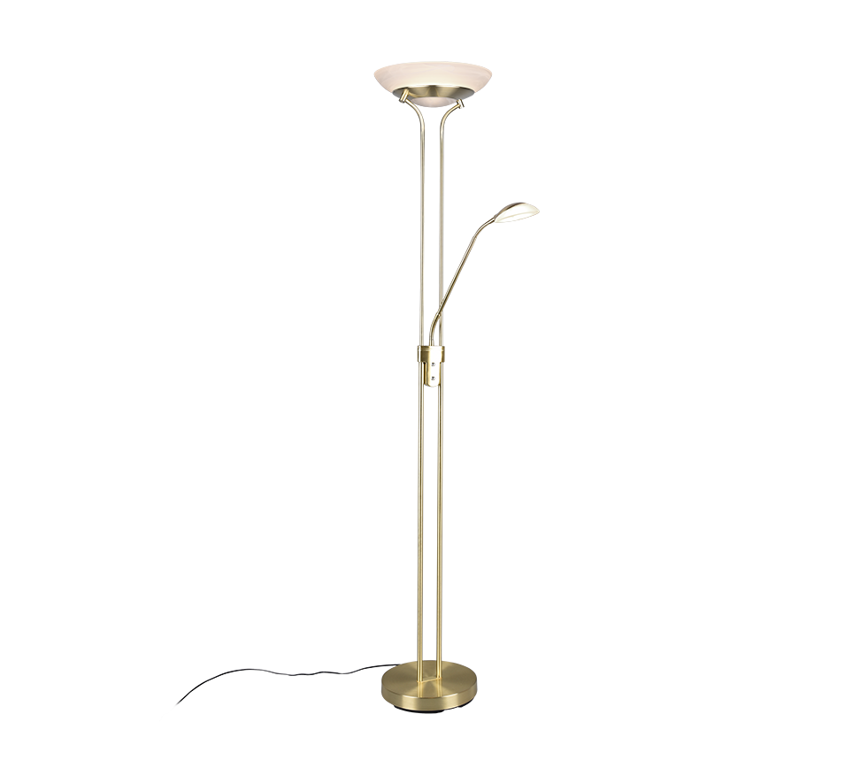 De staande lamp ORSON bekoort met haar tijdloos design en biedt talrijke toepassings- en vormgevingsmogelijkheden. Idealiter vindt de lamp een plaats naast de sofa of zetel, want voor het zo goed mogelijk lichtresultaat zorgt naast de plafondschijner als hoofdlichtbron een flexibele leesarm. Deze kan doelgericht gericht worden, zodat de gewenste lichtinval vrij gekozen kan worden. De plafondschijner en leesarm kunnen apart van elkaar bediend en niveauloos gedimd worden. Dankzij de ingebouwde geheugenfunctie begint de lamp met laatst gekozen lichtinstelling. Dankzij het klassieke kleurschema in messing en het albastkleurige glas kan de lamp met vele inrichtingsstijlen gecombineerd worden. Daarnaast beschikt de lamp over een moderne ledtechnologie die zich onderscheidt met een hoge lichtkwaliteit en energie-efficiëntie. In vergelijking met gewone halogeenlampen kan tot 80% bespaard worden op de energiekosten. Bovendien hebben ledlampen een lange levensduur, produceren minder warmte en zijn milieuvriendelijk.