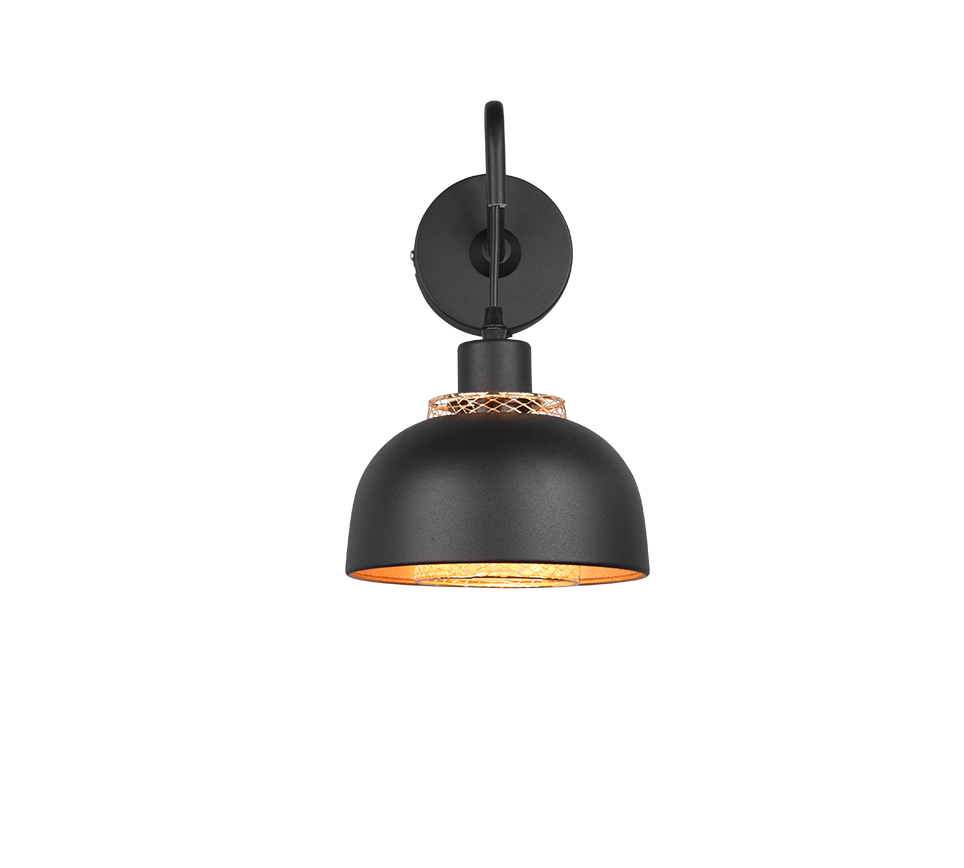 De eenvlammige wandlamp uit de serie PUNCH overtuigt door haar industriële look en past zich perfect aan aan moderne, puristische inrichtingsstijlen in uw keuken of slaapkamer. De moderne kap, die van binnenuit wordt aangevuld met een tweede, kleinere kap met tralielook als designelement, komt wonderbaarlijk tot gelding en zorgt voor bijzondere lichteffecten. Voor een flexibel gebruik is de wandlamp ook uitgerust met de FLEXconnect-functie. Hierdoor is de lamp geschikt voor vaste aansluiting zowel via de snoerschakelaar als zonder kabeltoevoerleiding. In dit geval wordt de lamp bediend via een gewone wandschakelaar. Het stijlvolle vorm- en kleurschema van de lamp in mat zwart en goudtinten geeft uw woning een industriële sfeer. Voor een energiebesparende verlichting is het gebruik van een ledlichtbron aanbevolen. Deze zijn een optimaal alternatief voor gewone halogeenlampen en staan voor een hoge lichtkwaliteit en een energiebesparing van tot 80%. Bovendien profiteert u bij ledlichtbronnen van een lange levensduur, een geringe warmteontwikkeling en spaart tegelijkertijd het milieu.