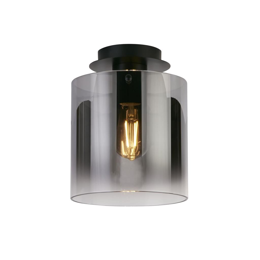 Sweden 1-lichts plafonnière – Mat zwart en gerookt glas