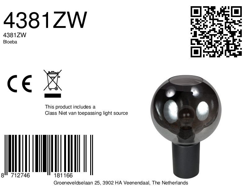 De Bloeba 4381ZW is een stijlvolle tafellamp die moeiteloos modern design en warme sfeer met elkaar verbindt. Deze uitvoering combineert de minimalistische zwarte metalen voet Bloeba 4128ZW met de handgemaakte rookglazen kap I15469S. Met een royale diameter van 25 cm en een hoogte van 21,9 cm is deze lamp een opvallend, maar verfijnd element in je interieur.