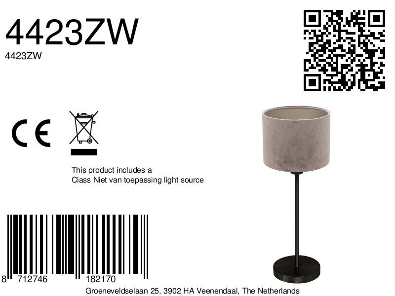 Tafellamp Noor 4423ZW is een elegante samenstelling van het matzwarte armatuur 1563ZW en de zachte, grijze velours kap K3084GS. De kap heeft een diameter van 20 cm en zorgt voor een warme, gedempte lichtverspreiding die perfect past in een modern of sfeervol interieur. Het armatuur is afgewerkt met een fijne poedercoating voor een strakke, matte uitstraling.