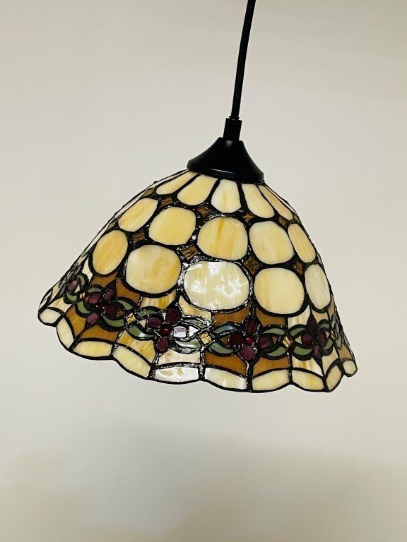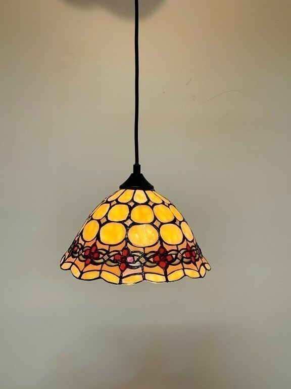 De Tiffany hanglamp Cherry 25 -snoer is met zorg met de hand vervaardigd. Elk stuk is ambachtelijk geassembleerd en gesoldeerd, waardoor unieke lampen ontstaan. Het gebruik van gekleurd glas zorgt voor verbluffende patronen en kleurschakeringen, waardoor de lamp een esthetische waarde toevoegt aan elke ruimte.