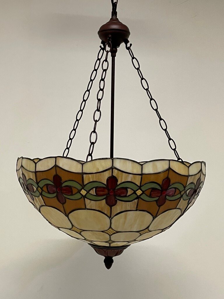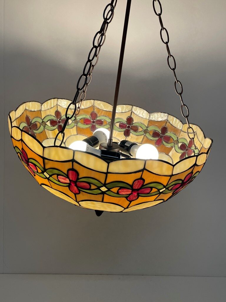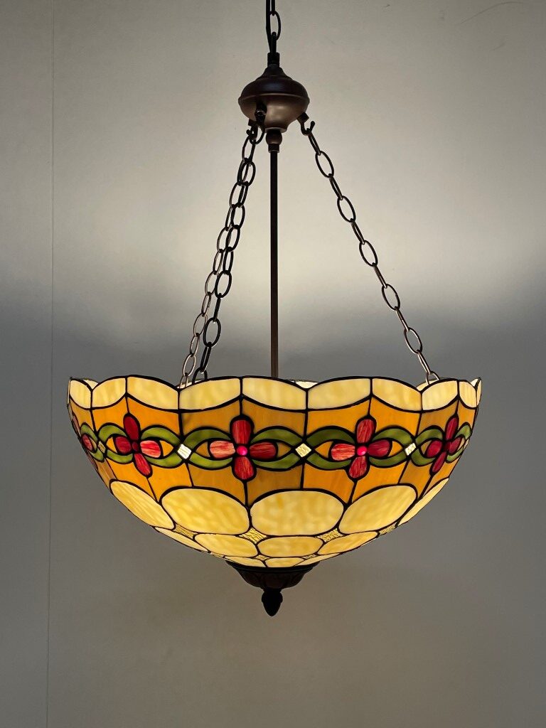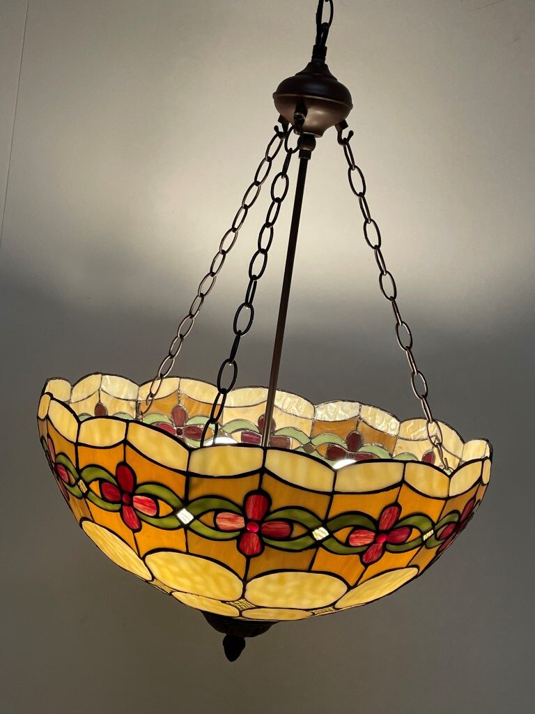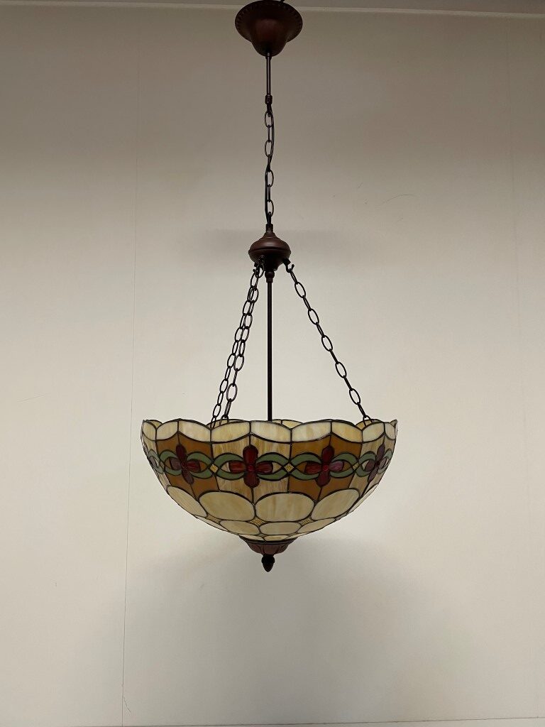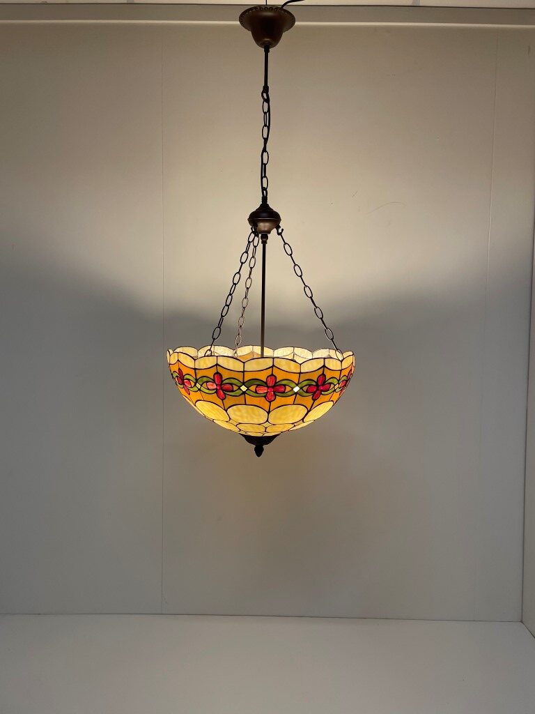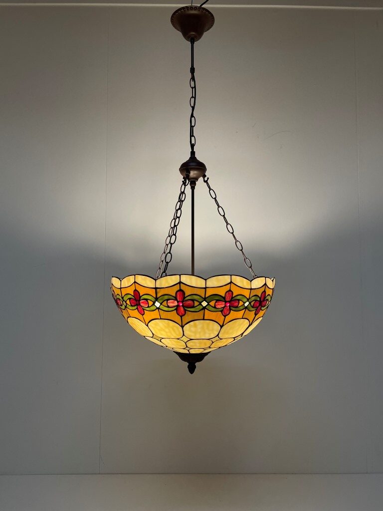 - Andere eigenschappen: Klassieke Tiffany kap met kersenpatroon, uitgerust met 3 fittingen voor mooi verdeeld licht, geschikt als plafondlamp, inclusief 125 cm ketting