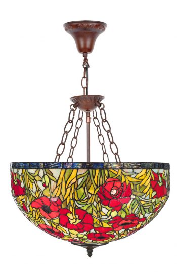 Met de Tiffany hanglamp Rosas 50 – c4 haal je een ware blikvanger in huis. Deze imposante hanglamp is uitgerust met 3 fittingen, zodat je kunt genieten van veel en mooi verdeeld licht. Dit maakt de lamp ook zeer geschikt als plafondlamp in een geweldige entree, waar hij direct de aandacht trekt.