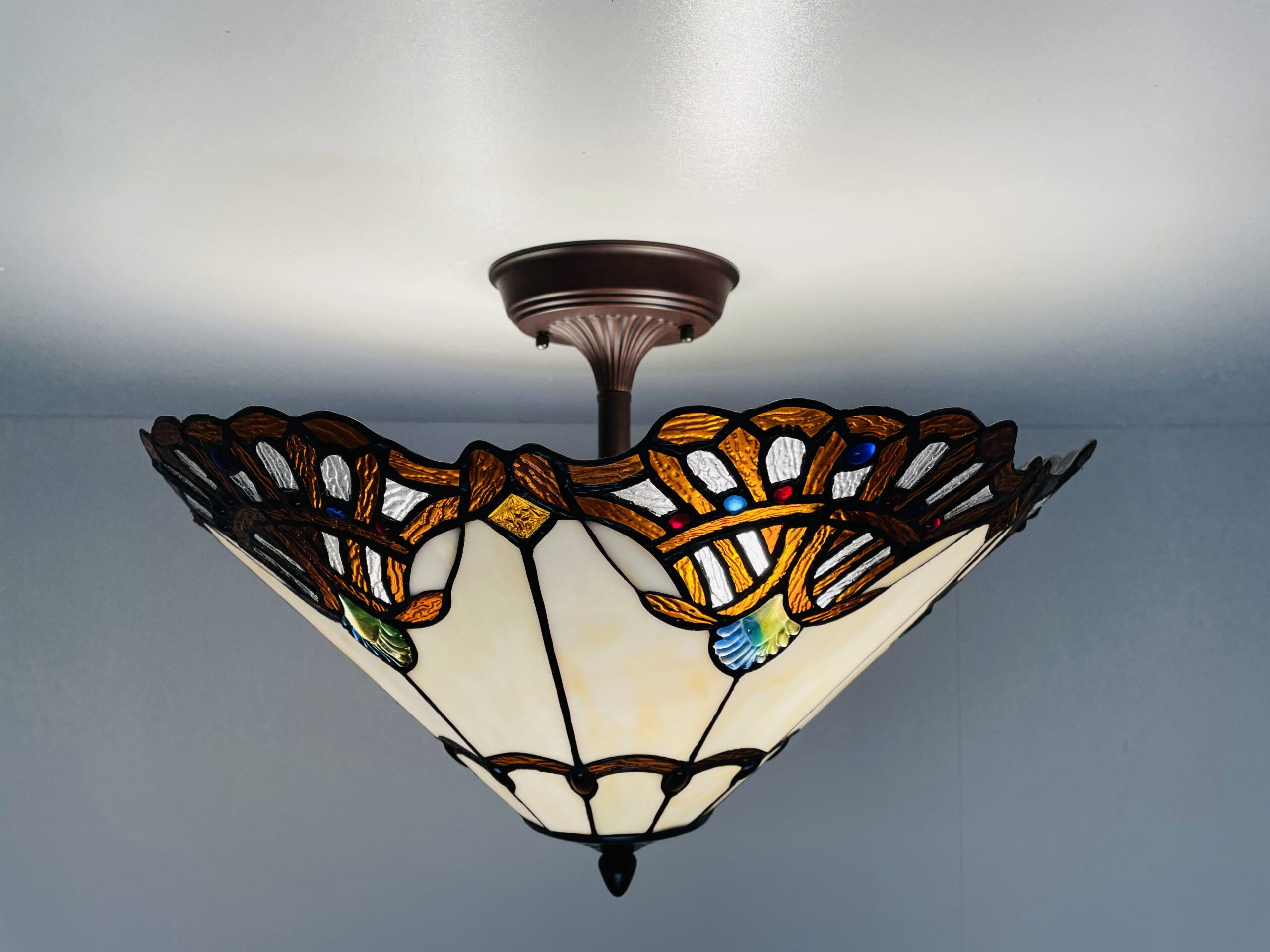 Een meesterwerk van kleur en ambacht: Tiffany plafondlamp 50cm Elba – Flow