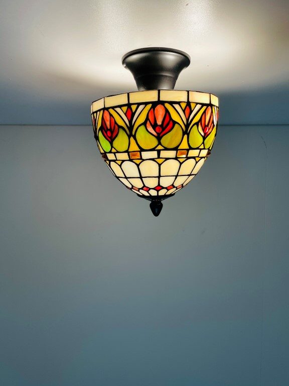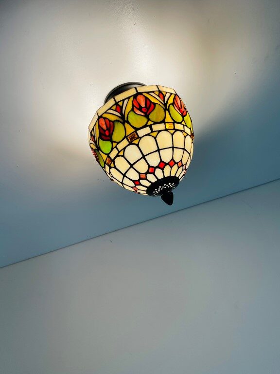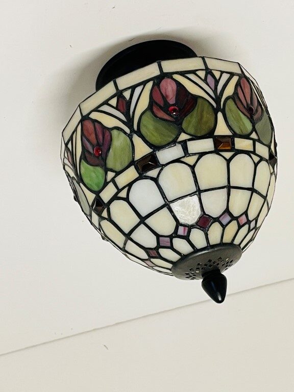 De Tiffany plafondlamp Bari 20-96 voegt niet alleen kleurrijke en artistieke schoonheid toe aan je interieur, maar ook een vleugje erfgoed en klasse. Geschikt voor verschillende ruimtes, van woonkamers tot kantoren, creëert deze lamp een warme sfeer met zijn verzachtende licht.