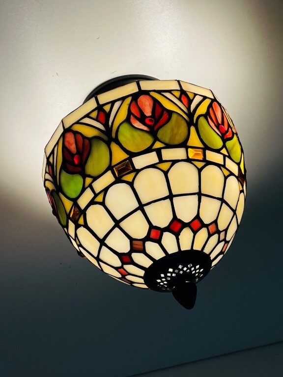 Deze lamp is met de hand vervaardigd, waarbij elk stuk glas zorgvuldig wordt geassembleerd en gesoldeerd. Dit resulteert in unieke ambachtelijke stukken die een tijdloze en duurzame waarde hebben. De hoogwaardige materialen waaruit deze lamp is gemaakt, maken hem tot een waardevol erfstuk dat jarenlang meegaat.