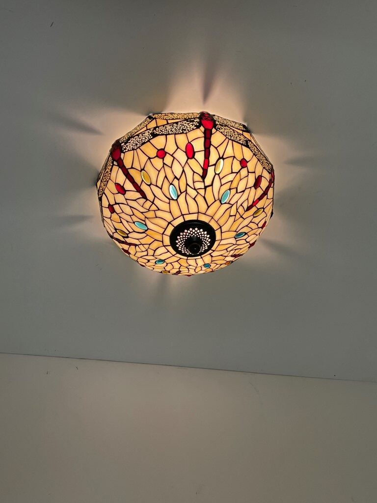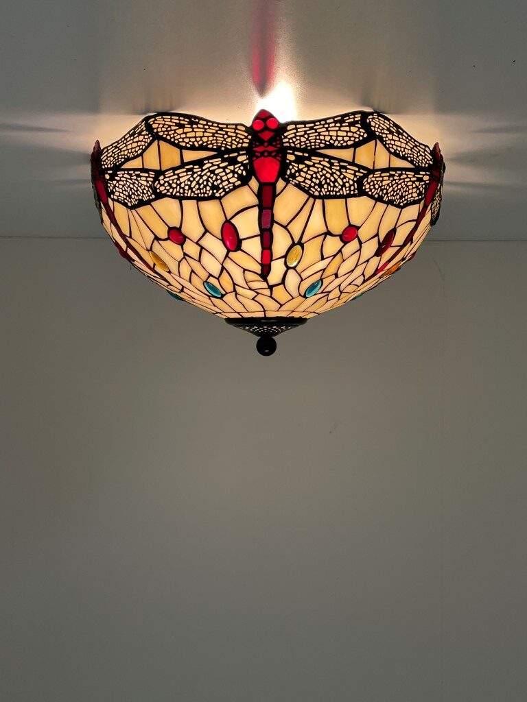 Geschikt voor diverse ruimtes, van woonkamers tot kantoren, deze plafondlamp voegt een warme sfeer toe aan elke omgeving. Het verspreidt een zacht en diffuus licht, wat zorgt voor een gezellige ambiance. Voeg erfgoed en klasse toe aan je interieur met de Tiffany plafondlamp Dragonfly 40/80 – een stijlvolle en tijdloze keuze.