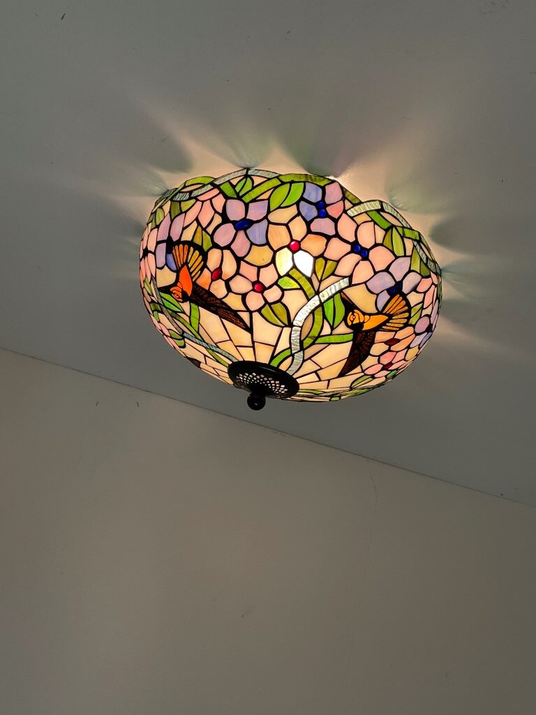 De Tiffany plafondlamp Hummingbird 40 – 80 is geschikt voor diverse ruimtes, van woonkamers tot kantoren. Het voegt erfgoed en klasse toe aan elk interieur, waardoor het een stijlvolle en elegante keuze is. Of je nu op zoek bent naar een lamp die een statement maakt in je interieur, of juist een subtiele toevoeging wilt, deze lamp zal zeker aan al je verwachtingen voldoen. Laat je betoveren door de tijdloze schoonheid van deze Tiffany plafondlamp en geniet van de unieke ambiance die het met zich meebrengt.