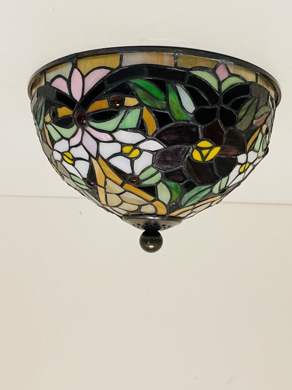 Met de Tiffany Plafondlamp ⌀25cm Madeira – 80 haal je een uniek stukje ambachtelijke kunst in huis. Elk stuk van deze lamp is met de hand vervaardigd, waardoor elk exemplaar een unieke uitstraling heeft. Het gekleurde glas zorgt voor verbluffende patronen en kleurschakeringen die een kleurrijke en artistieke schoonheid toevoegen aan je interieur.