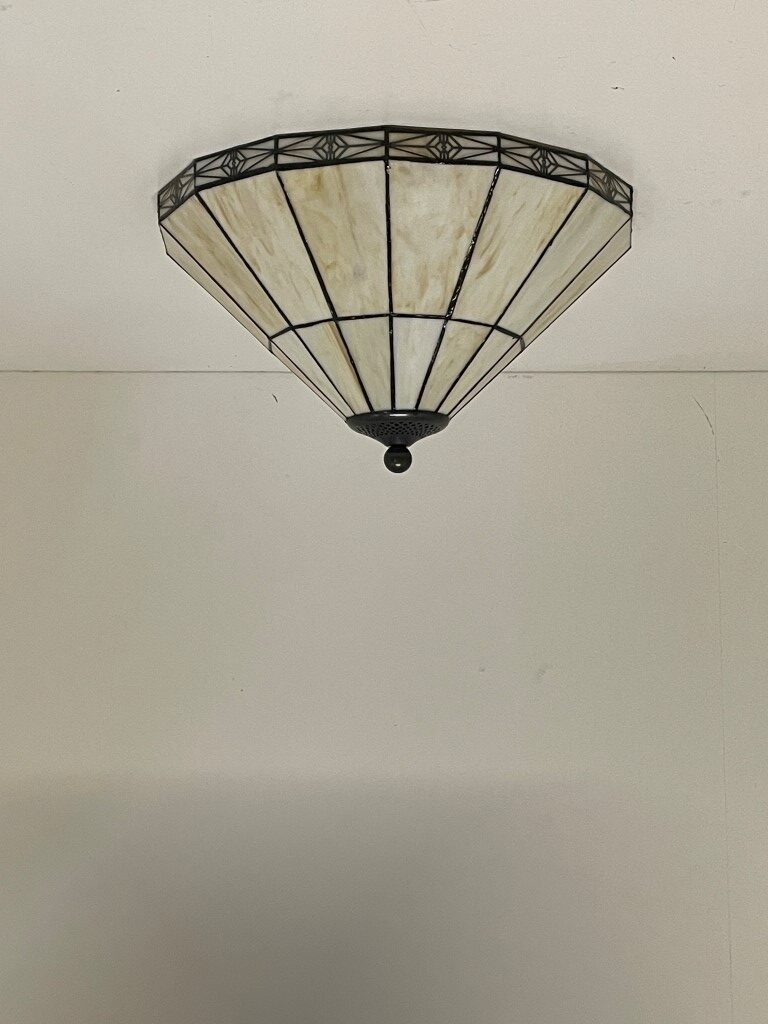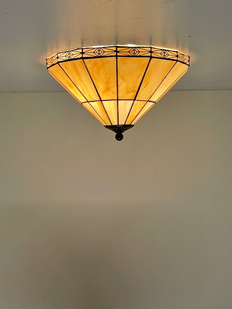 De lamp heeft een strakke uitstraling en de kap sluit naadloos aan op het plafond, waardoor het een subtiele aanvulling is op je interieur. Met een diameter van 41 cm en een hoogte van ca. 27 cm is de Tiffany plafondlamp Pretty 41 / 80 perfect voor middelgrote tot grote ruimtes.