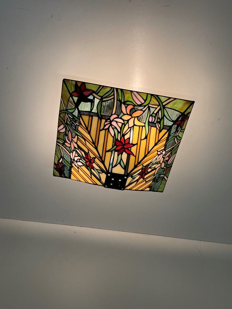Met de Tiffany plafondlamp Sevilla 40/ Flow haal je een uniek stukje ambacht in huis. Elk exemplaar is met de hand vervaardigd, waardoor je een echt kunstwerk aan het plafond hebt hangen. Het kenmerkende gebruik van gekleurd glas resulteert in verbluffende patronen en kleurschakeringen, waardoor deze lamp een waar pronkstuk is in iedere ruimte.