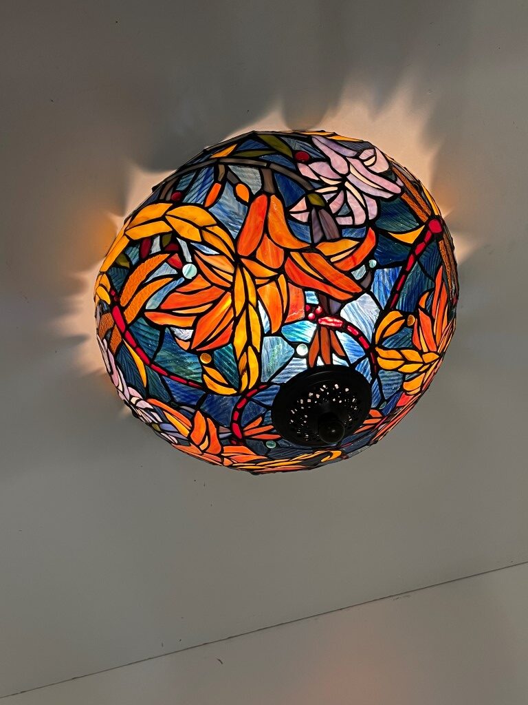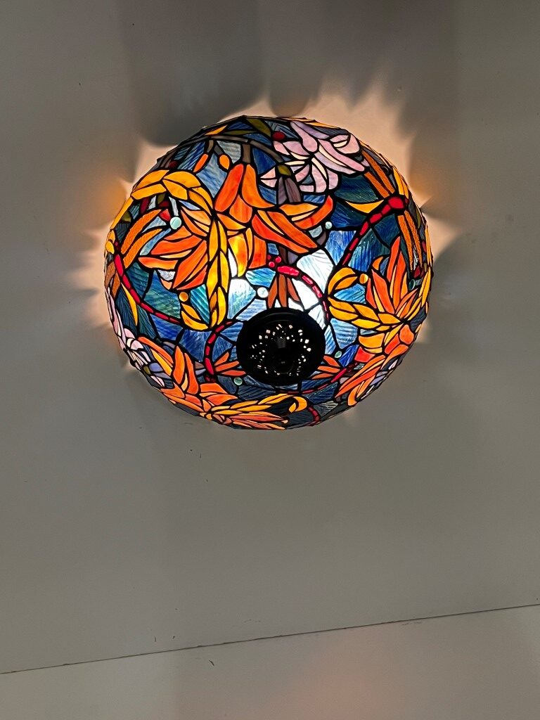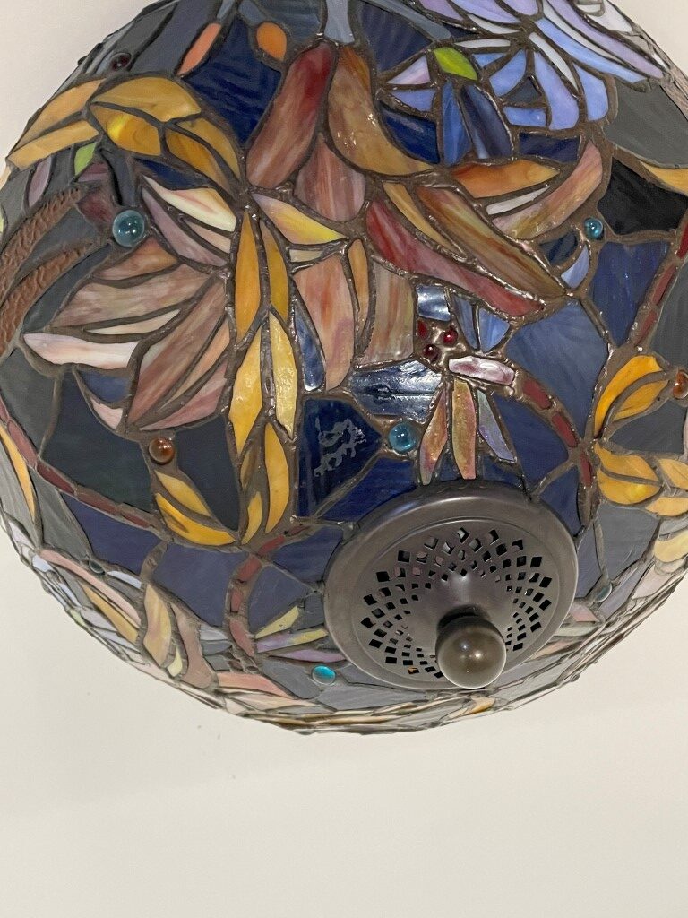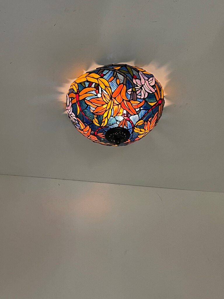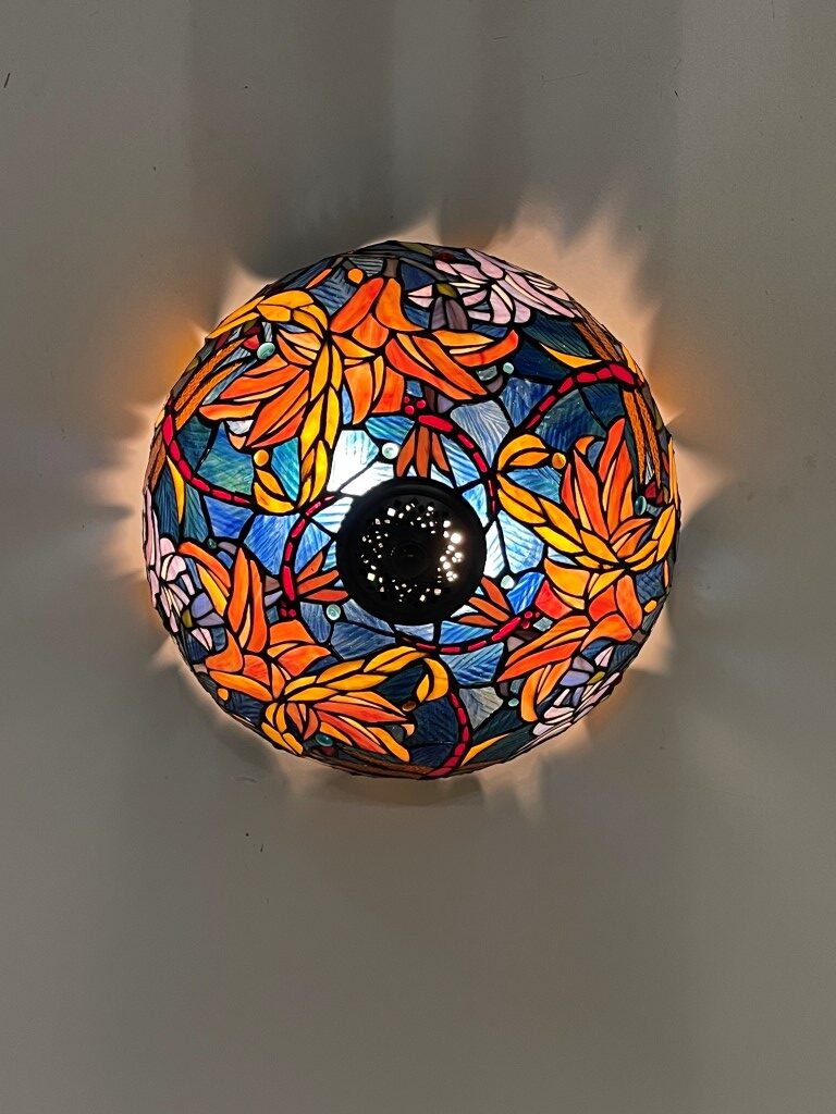De Tiffany plafondlamp Stockholm 40 – 80 is met de hand vervaardigd en gemaakt van echt glas. Dit betekent dat elk stuk uniek is en met vakmanschap is geassembleerd en gesoldeerd. Het gebruik van gekleurd glas zorgt voor verbluffende patronen en kleurschakeringen, wat de lamp een ware blikvanger maakt.