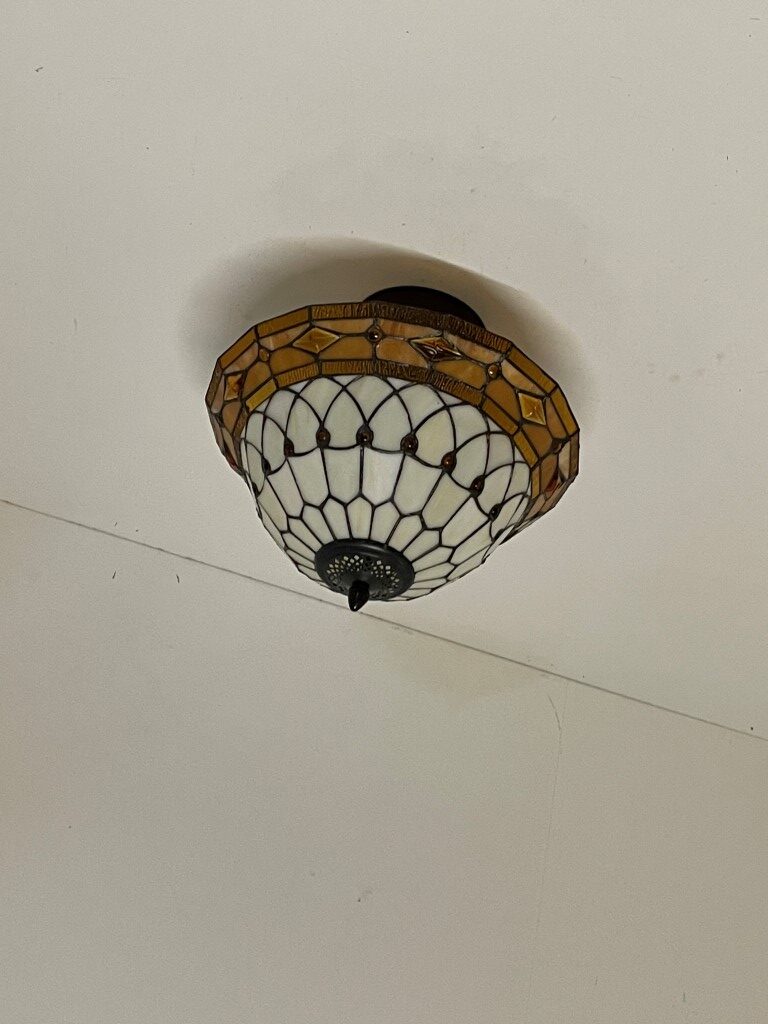 Laat je betoveren door de magie van het gekleurde glas en geniet van de warme en sfeervolle gloed die de Tiffany plafondlamp Switserland 40/ Flow verspreidt. Voeg een vleugje artistieke schoonheid toe aan je interieur met deze prachtige Tiffany lamp.
