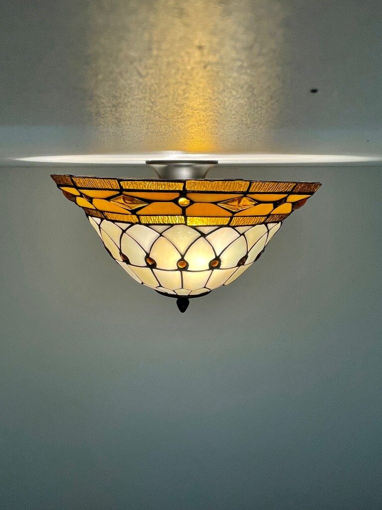 De Tiffany plafondlamp Switzerland 40 / 96 is een prachtig voorbeeld van vakmanschap en esthetische waarde. Met de hand vervaardigd door ervaren ambachtslieden, is elke lamp uniek en een waar kunstwerk op zichzelf. Het kenmerkende gekleurde glas zorgt voor verbluffende patronen en kleurschakeringen, waardoor deze lamp een echte eyecatcher is in elke ruimte.