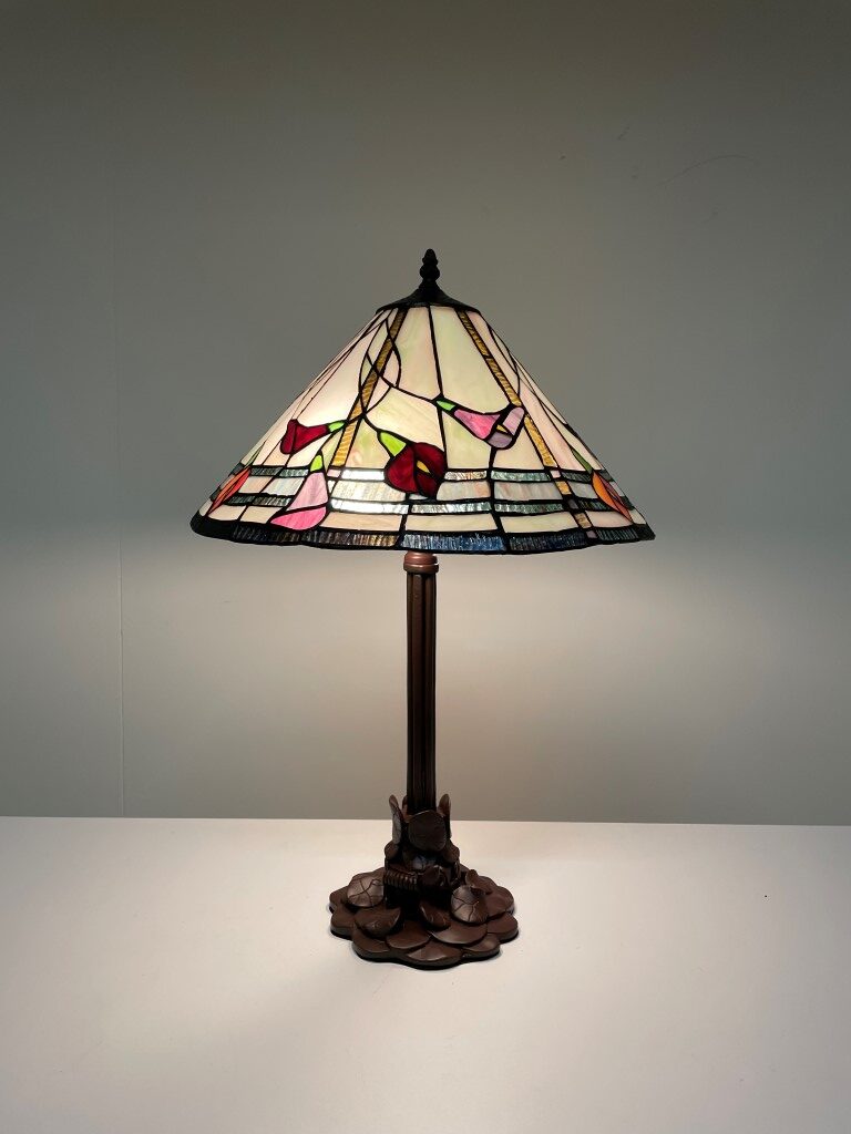 De lamp is gemaakt van hoogwaardige materialen en heeft een tijdloos ontwerp, waardoor het niet alleen een functionele verlichtingsbron is, maar ook een decoratief kunstwerk dat stijl en klasse aan je interieur toevoegt. De Tiffany tafellamp Calla 40 / P3 is geschikt voor verschillende ruimtes, van woonkamers tot kantoren, waar het een gezellige ambiance creëert en een vleugje erfgoed en elegantie toevoegt.