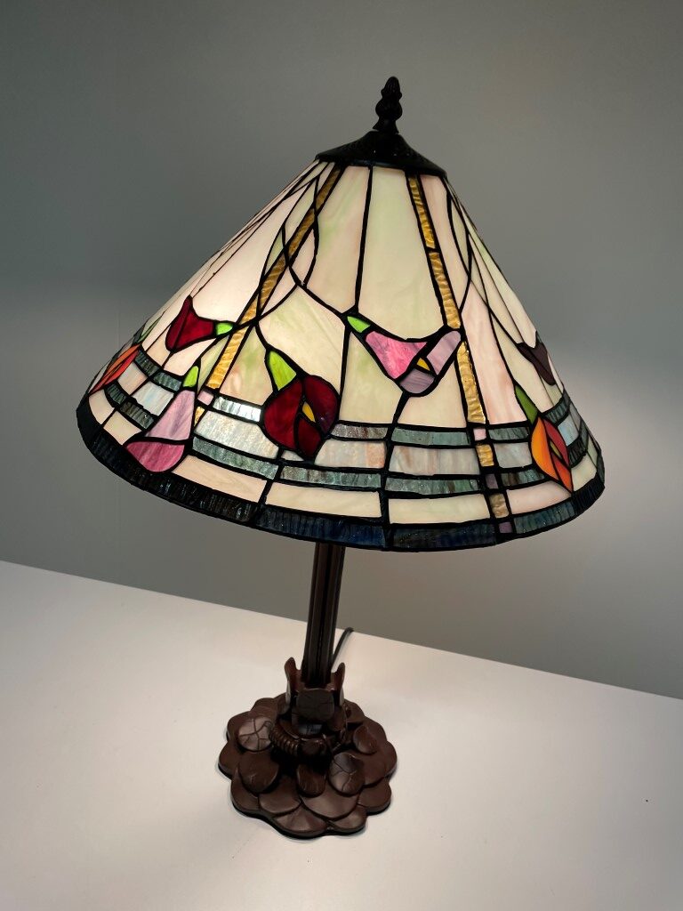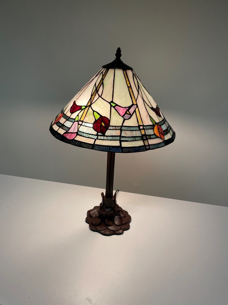 Met de Tiffany tafellamp Calla 40 / P3 haal je een imposante en ambachtelijke eyecatcher in huis. Deze prachtige lamp is met de hand vervaardigd, waardoor elk stuk uniek is. Het kenmerkende gebruik van gekleurd glas zorgt voor verbluffende patronen en kleurschakeringen die je interieur verfraaien en een warme, kleurrijke sfeer creëren.