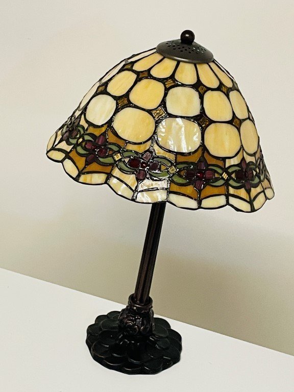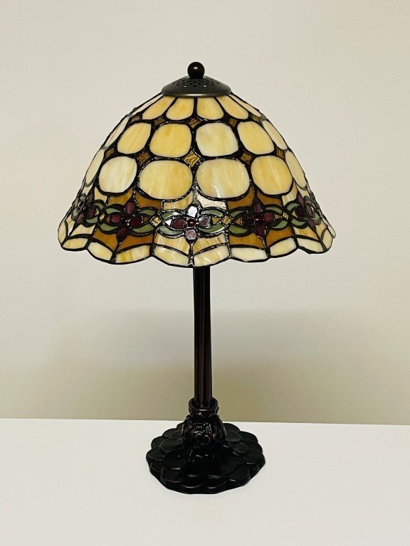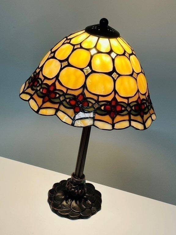 De Tiffany tafellamp Cherry 25 / p29 is een prachtige toevoeging aan jouw interieur. Met zijn mooie, bewerkte Tiffany voet en opvallende cherr
