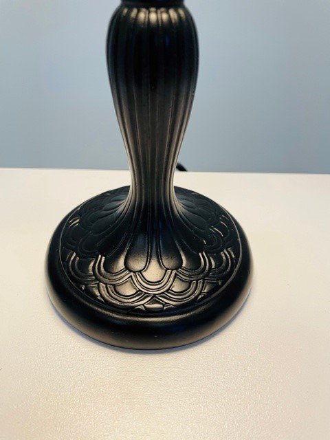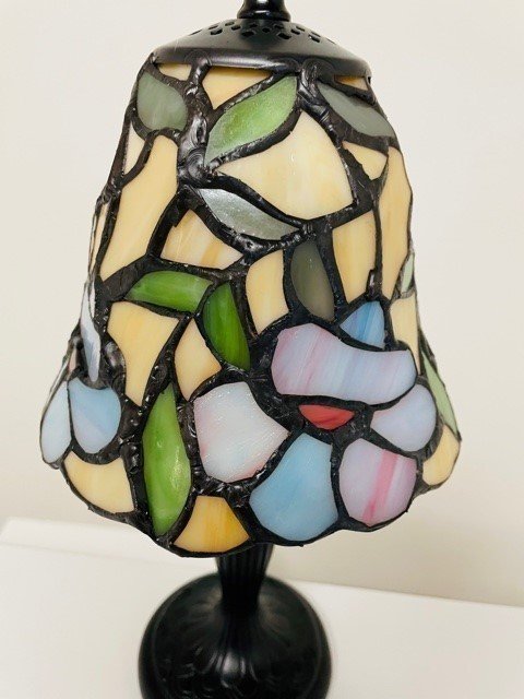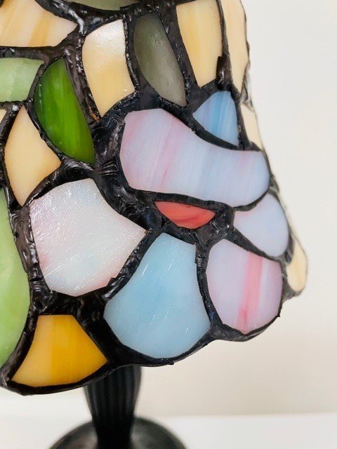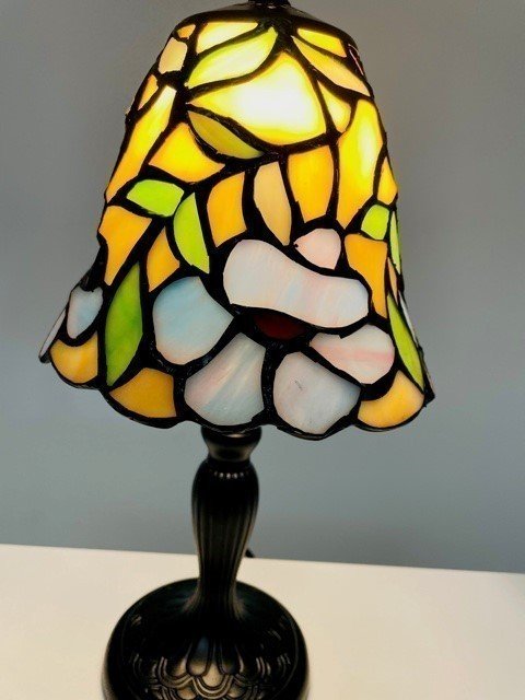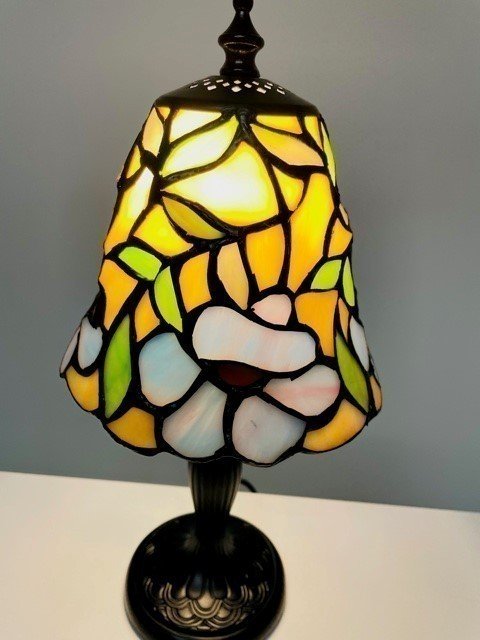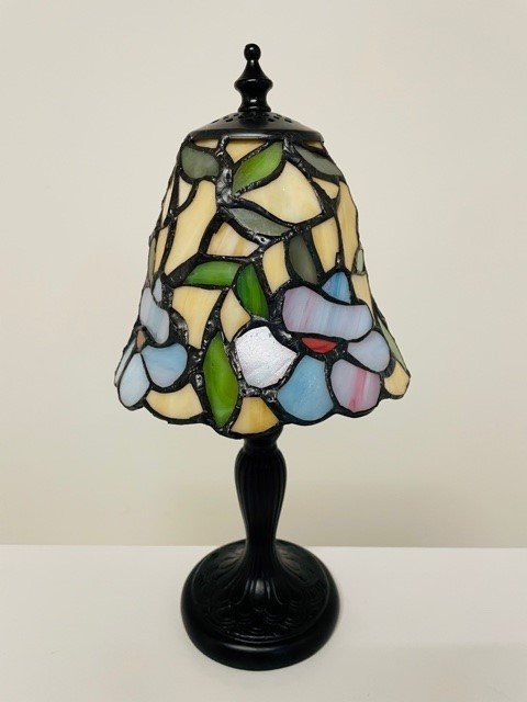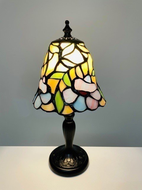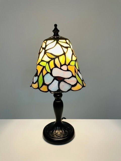 Elke Tiffanylamp wordt met de hand vervaardigd, waardoor elk stuk uniek is. Het samensmelten en solderen van de hoogwaardige materialen geeft deze lamp zijn ambachtelijke uitstraling. De Tiffanykap heeft een doorsnee van Ø16cm en wordt gemaakt van echt glas, terwijl de voet vervaardigd is van polystone en metaal.