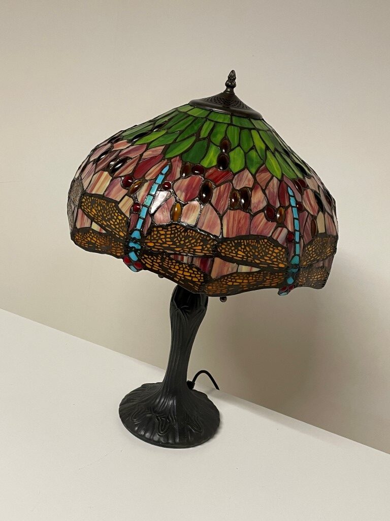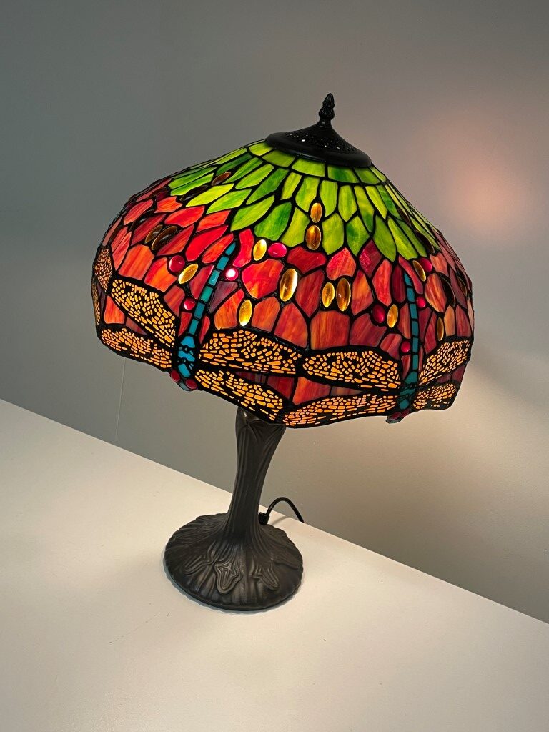 Unieke Tiffany tafellamp met prachtige draken- en libellenmotieven