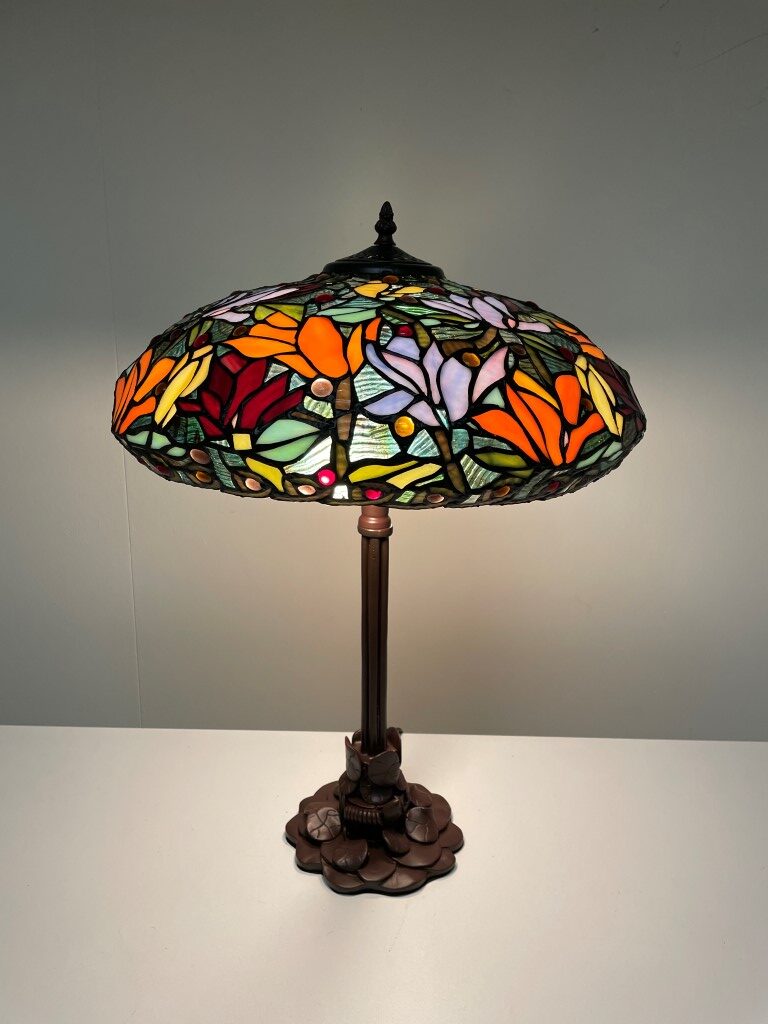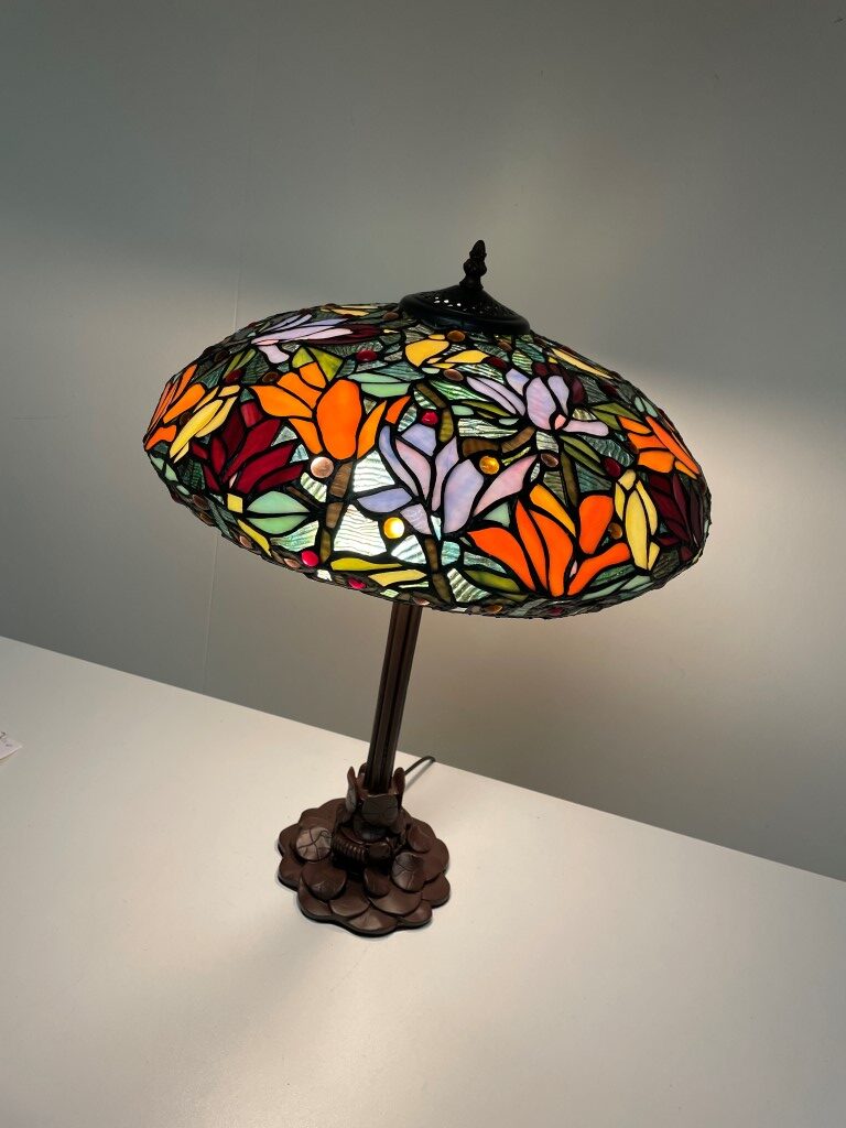Maak kennis met de prachtige Tiffany tafellamp San Marino. Met zijn imposante hoogte van 61 cm en een diameter van 40 cm is deze lamp een ware blikvanger in elke ruimte. Het unieke handgemaakte ontwerp van glas maakt elke lamp een waar kunstwerk.