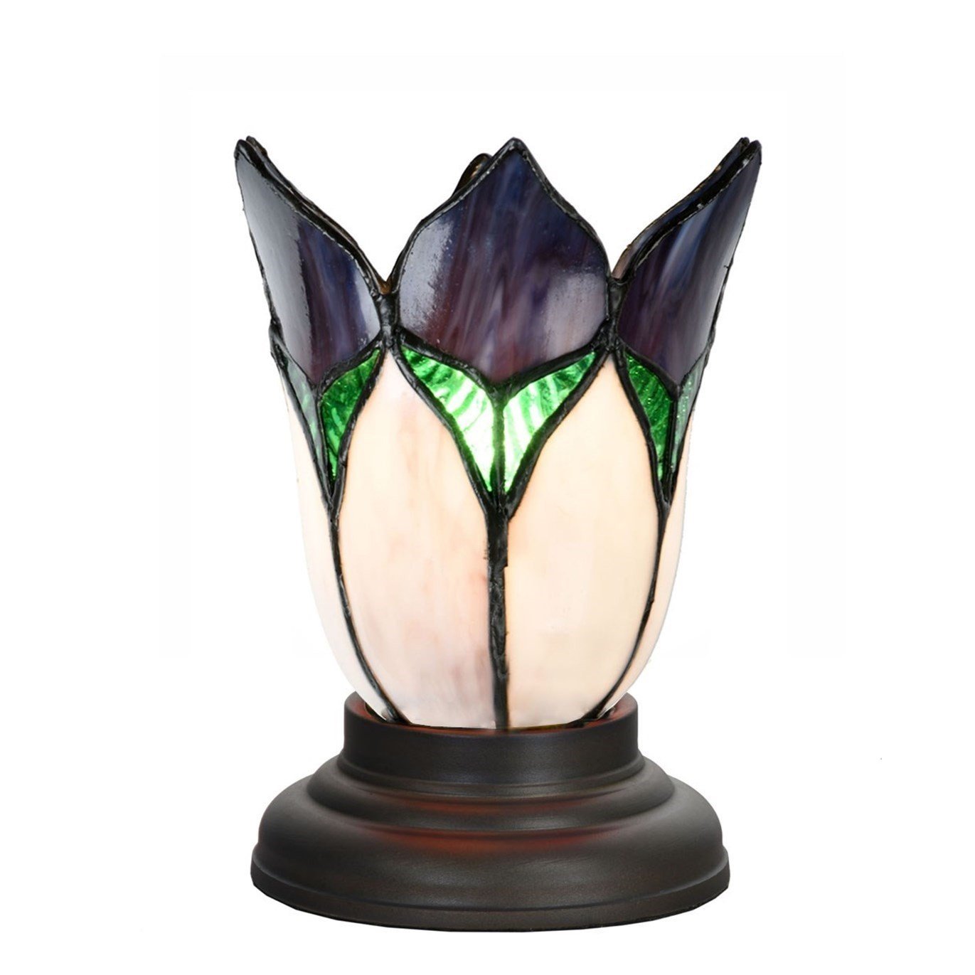 Laat je betoveren door het Tiffany Tafellampje laag Lovely Flower Purple. Dit prachtige lampje in de vorm van een tulp voegt een vleugje magie en kleur toe aan elke ruimte. De slanke gebogen bloemblaadjes in de motiverende kleuren dieppaars/lavendelblauw en transparant groen geven de lamp een pittige uitstraling. Met zijn gracieuze ontwerp is dit lampje een ware eyecatcher in jouw interieur.