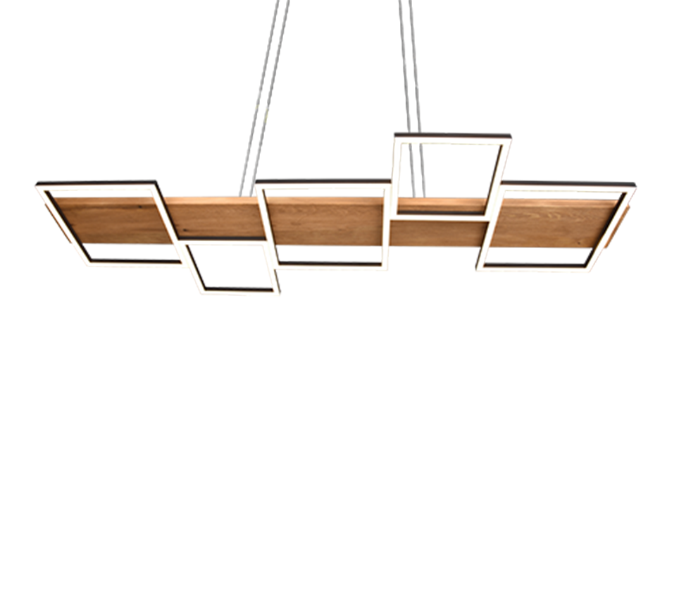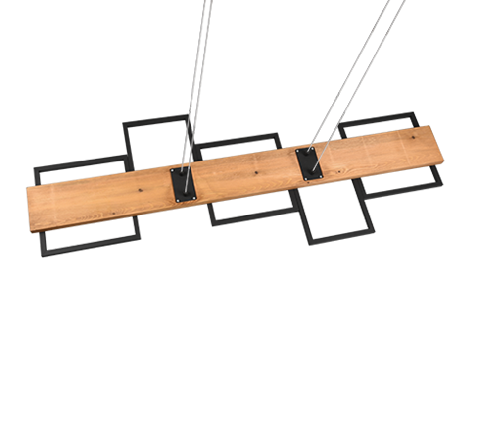 De hanglamp Harper belooft comfort en elegantie in uw huis dankzij haar moderne design. De combinatie van de materialen hout en metaal onderstreept de elegante woonstijl en zorgt met de vijf vierkante lichtelementen voor een aangename verlichting boven de eettafel. Bovendien heeft de lamp een SWITCH-dimmer en kan zo de helderheid met een conventionele lichtschakelaar worden aangepast van 100% naar 50% en 25%. De lamp wordt in uw woonkamer een echt pronkstuk dankzij het natuurlijke hout en metaal in mat zwart, dat gegarandeerd voor een blikvanger zorgt. Daarnaast beschikt de lamp over een moderne ledtechnologie die zich onderscheidt met een hoge lichtkwaliteit en energie-efficiëntie. In vergelijking met gewone halogeenlampen kan tot 80% bespaard worden op de energiekosten. Bovendien hebben ledlampen een lange levensduur, produceren minder warmte en zijn milieuvriendelijk.