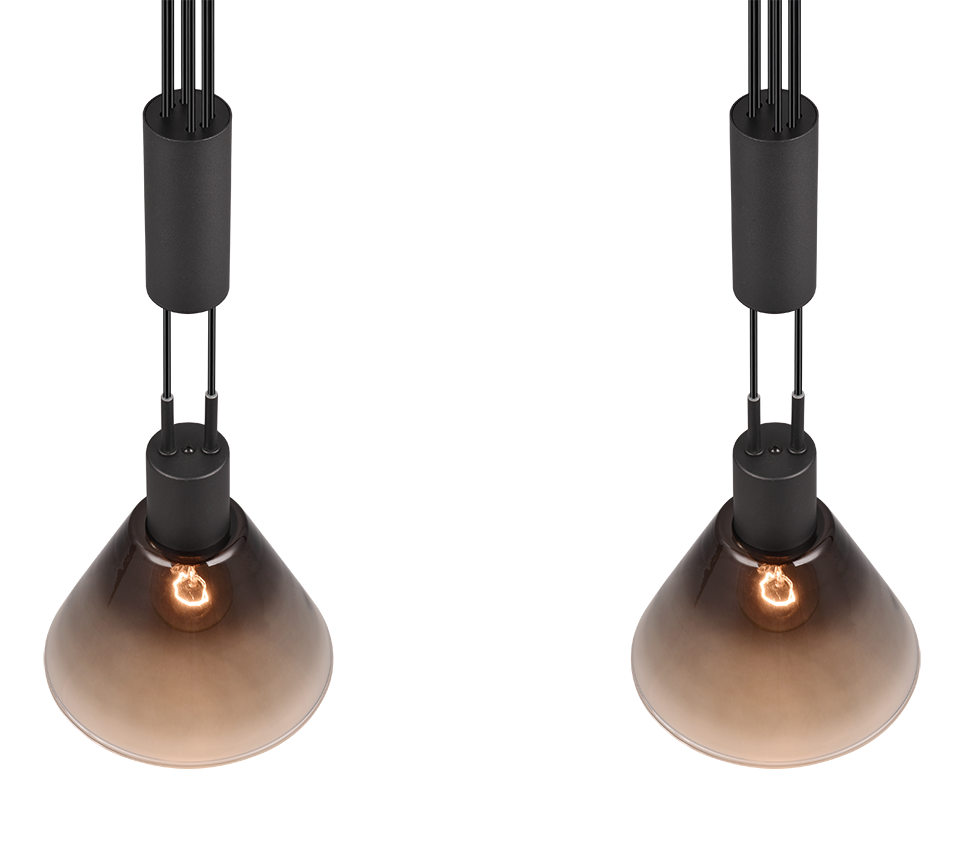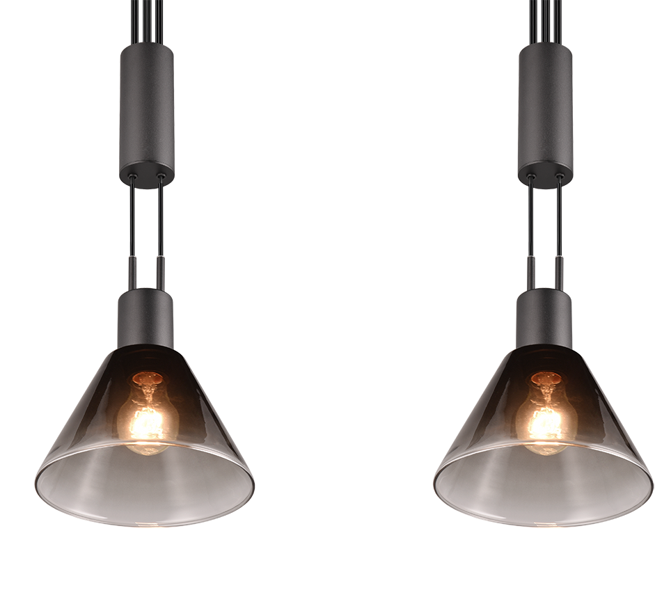 De tweelichts STANLEY hanglamp zet bijzondere lichtaccenten in je woonkamer. Het kleurenschema en het ontwerp van het glas creëren een magische flair en een elegant lichtspel boven je eet- of woonkamertafel. De in hoogte verstelbare elementen zorgen voor een flexibele lichtverdeling naar wens en ronden de sfeer perfect af. Het matzwarte metaal en de rookkleurige glazen kap stralen koelte en moderniteit uit in je woonkamer. Het gebruik van LED lichtbronnen wordt aanbevolen voor energiebesparende verlichting. Deze vormen een ideaal alternatief voor conventionele halogeenlichtbronnen en bieden een hoge lichtkwaliteit en energiebesparingen tot 80%. Met LED lichtbronnen profiteert u ook van een lange levensduur en een lage warmteontwikkeling, terwijl het milieu wordt beschermd.