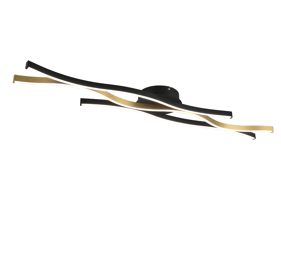 De mooie gebogen vorm van de plafondlamp BLAZE zet uw eet- of woonkamer doelgericht in scène en wordt bovendien een blikvanger aan het plafond. De moderne en elegante lamp heeft een SWITCH-dimmer, waarmee de helderheid kan worden aangepast van 100% tot 50% en 25% door middel van een conventionele lichtschakelaar. Daarnaast heeft de lamp een schakelaar, waarmee de lichtkleur (warm wit, neutraal wit of daglicht wit) kan worden ingesteld. Het design van de lamp wordt afgerond door de eenvoudige kleurencombinatie van mat messing en mat zwart. Daarnaast beschikt de lamp over een moderne ledtechnologie die zich onderscheidt met een hoge lichtkwaliteit en energie-efficiëntie. In vergelijking met gewone halogeenlampen kan tot 80% bespaard worden op de energiekosten. Bovendien profiteert u bij ledlichtbronnen van een lange levensduur, een geringe warmteontwikkeling en spaart tegelijkertijd het milieu.