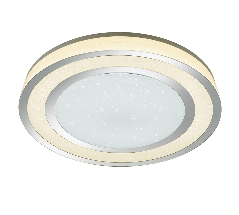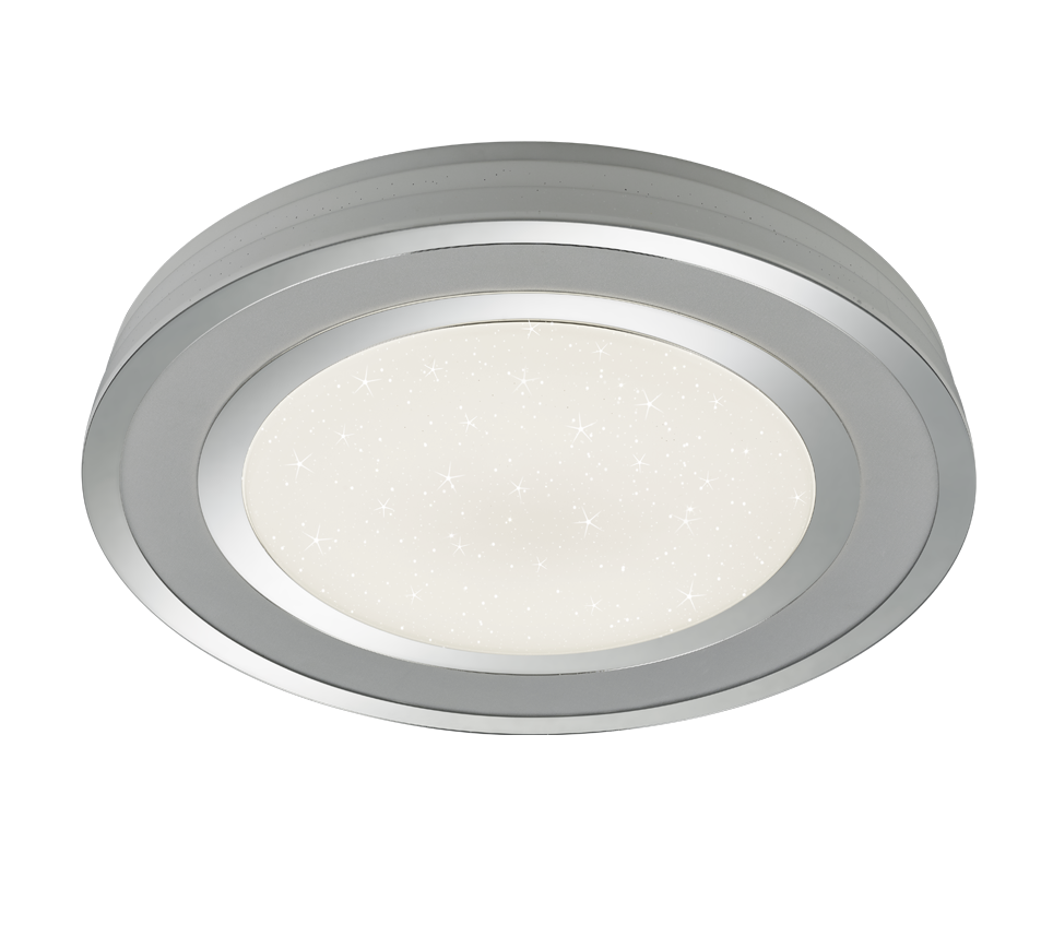 De ronde ledlamp is een echte goochelaar en vervult elke lichtwens. Met haar modern design wordt de lamp al snel een nieuwe blikvanger in uw woonruimte. Het deksel van de lamp werkt zoals een kleine sterrenhemel die uw woonruimtes iets speciaals verleent. Creëer uw eigen individueel lichtresultaat: door de dimfunctie kunt u de lichthelderheid naar believen regelen en aanpassen aan uw behoeften. Dankzij de geïntegreerde geheugenfunctie wordt het laatst met de afstandsbediening ingestelde lichtscenario ingesteld, zodra de lamp via de muurschakelaar uit- en weer ingeschakeld wordt. Ook beschikt de lamp over een nachtlichtfunctie. De in chroom ontworpen lamp laat zich met verschillende kleur- en inrichtingsconcepten combineren. Daarnaast beschikt de lamp over een moderne ledtechnologie die zich onderscheidt met een hoge lichtkwaliteit en energie-efficiëntie. In vergelijking met gewone halogeenlampen kan tot 80% bespaard worden op de energiekosten. Bovendien hebben ledlampen een lange levensduur, produceren minder warmte en zijn milieuvriendelijk.