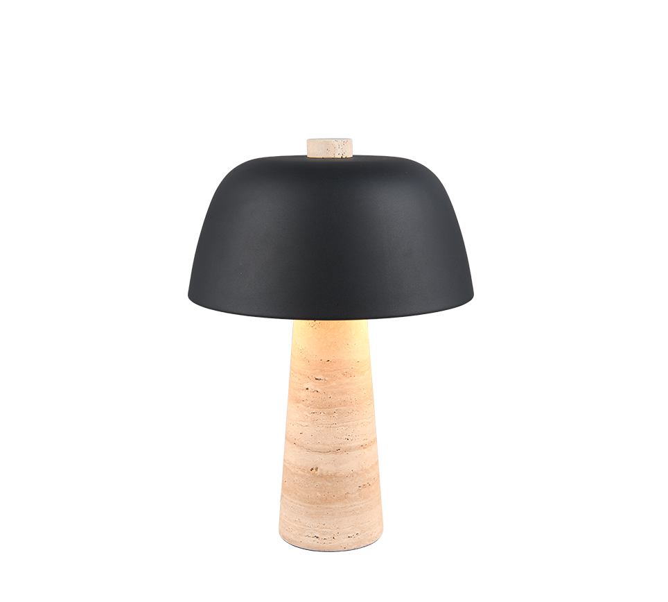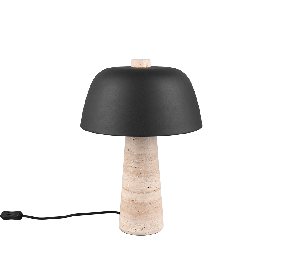 De TIMBA tafellamp combineert elegant metaal met een ongebruikelijke voet van travertijnsteen, waardoor een unieke combinatie van natuur en design ontstaat. De voet van natuursteen maakt indruk met zijn individuele patroon, dat elke lamp een aparte uitstraling geeft. Met zijn paddenstoelvormige ontwerp schijnt TIMBA het licht aangenaam naar beneden en creëert stijlvolle accenten, vooral op een dressoir. De geïntegreerde snoerschakelaar zorgt voor een eenvoudige bediening. Het matzwarte metaal en de natuurlijke travertijnsteen onderstrepen het elegante kleurenschema van deze speciale lamp. Het gebruik van LED lichtbronnen wordt aanbevolen voor energiebesparende verlichting. Deze vormen een ideaal alternatief voor conventionele halogeenlichtbronnen en bieden een hoge lichtkwaliteit en energiebesparingen tot 80%. Met LED lichtbronnen profiteert u ook van een lange levensduur en een lage warmteontwikkeling, terwijl het milieu wordt beschermd.