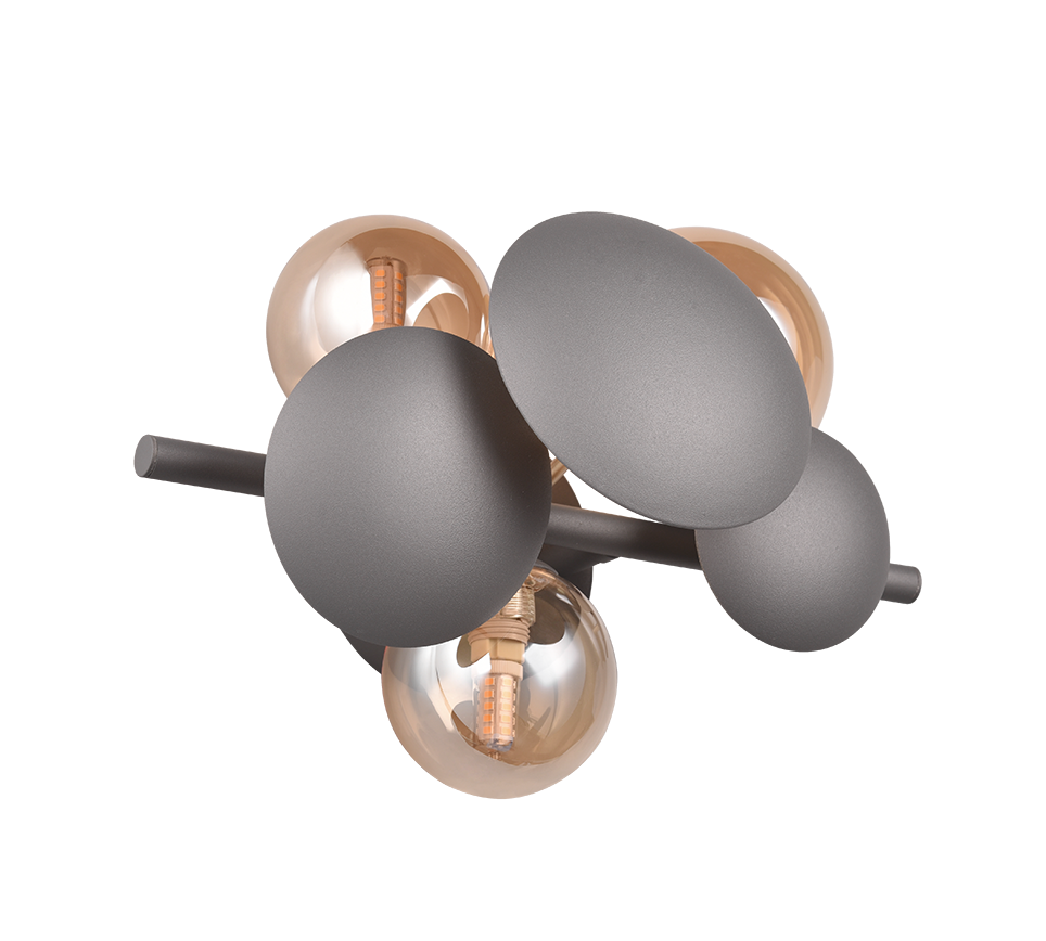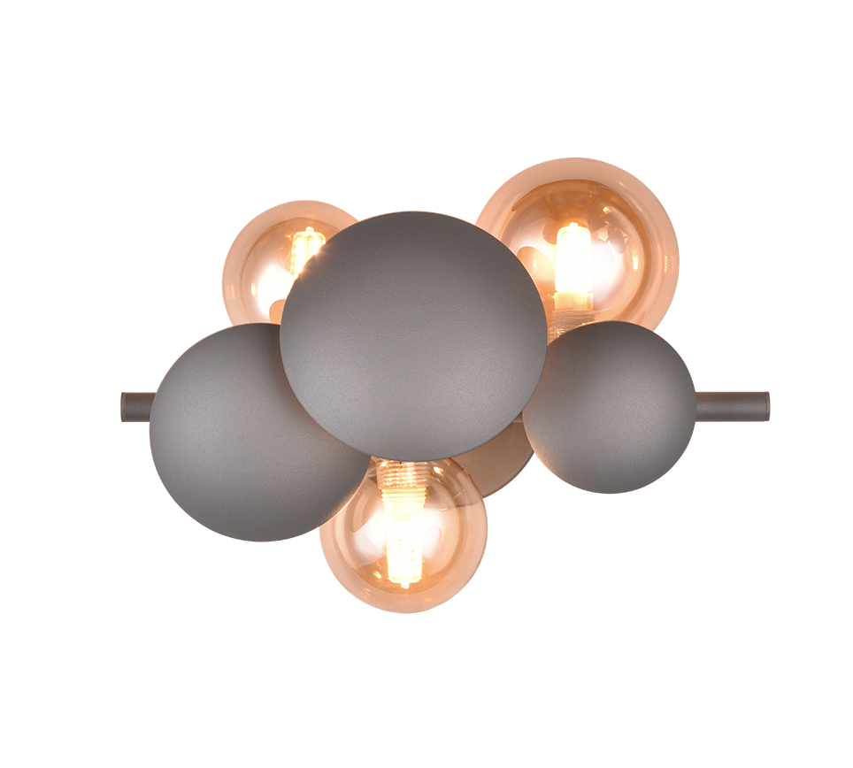 De lampen uit de BUBBLE serie creëren opmerkelijke accenten met een wow-effect in je woonruimte. De wandlamp ontvouwt haar buitengewone effect bijzonder indrukwekkend in de woonkamer of hal en speelt met licht en schaduw dankzij haar onmiskenbare ontwerp. Het unieke ontwerp van de armatuur wordt benadrukt door de materiaalcombinatie van amberkleurig glas en antraciet- en goudkleurig metaal. Het gebruik van LED lichtbronnen wordt aanbevolen voor energiebesparende verlichting.