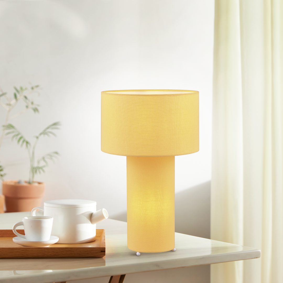 Lampen met stof stralen gezelligheid en warmte uit. De BALE tafellamp, die van de kap tot aan de voet van de lamp in stof is gewikkeld, wordt gekenmerkt door een rustig verlichtingsconcept en nodigt uit tot gezellig binnen zitten. Bij het bed of op een klein bijzettafeltje naast de fauteuil dient BALE als een stijlvol decoratief element dat een aangename sfeer creëert met zijn zachte lichtuitstraling. Het licht kan ook worden in- en uitgeschakeld met een praktische snoerschakelaar. Het moderne ontwerp en het eenkleurige design in Illuminate geel zorgen voor stijlvolle kleuraccenten met een opvallend karakter. Het gebruik van LED lichtbronnen wordt aanbevolen voor energiebesparende verlichting. Deze vormen een ideaal alternatief voor conventionele halogeenlichtbronnen en bieden een hoge lichtkwaliteit en energiebesparingen tot 80%. Met LED lichtbronnen profiteert u ook van een lange levensduur en een lage warmteontwikkeling, terwijl het milieu wordt beschermd.