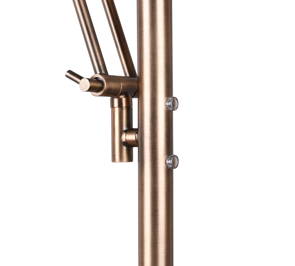 De moderne schijnwerper BARRIE overtuigt met zijn vele praktische functies. Via twee aparte aanraakpunten kunnen zowel de hoofdlichtbron als de leeslamp onafhankelijk van elkaar bediend worden. Daarnaast kunnen de lichtkleur en de helderheid van beide lichtbronnen individueel via de aanraakpunten aangepast worden. Door de geïntegreerde geheugenfunctie wordt het laatst ingestelde lichtscenario automatisch weer ingesteld. Bij de hoofdlichtbron is het binnenste licht zwenkbaar, zodat de lichtinval ook naar boven gericht kan worden. De leesarm kan flexibel aan twee punten versteld worden, zodat ook de positie vrij gekozen kan worden. Het kleurschema in oud messing laat zich zowel in klassieke als moderne woonruimtes uitstekend integreren. Daarnaast beschikt de lamp over een moderne ledtechnologie die zich onderscheidt met een hoge lichtkwaliteit en energie-efficiëntie. In vergelijking met gewone halogeenlampen kan tot 80% bespaard worden op de energiekosten. Bovendien hebben ledlampen een lange levensduur, produceren minder warmte en zijn milieuvriendelijk.