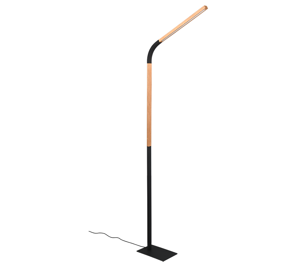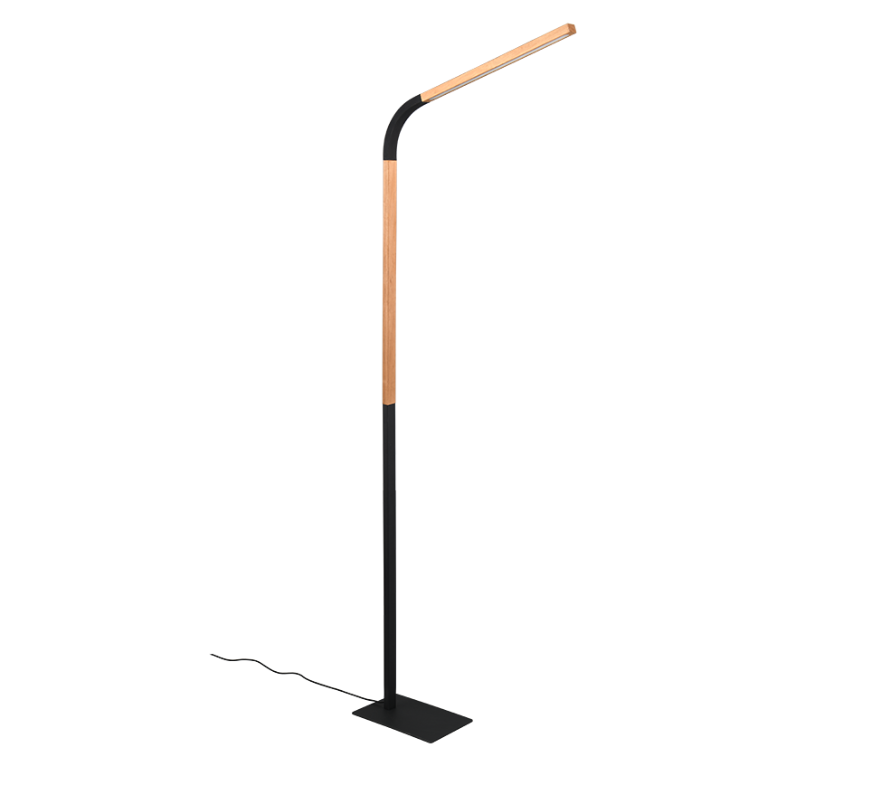 Ontspannen met een boek of tablet na het werk – dat vraagt om een harmonieuze lichtsfeer: Met de geĂŻntegreerde SWITCH-dimmer biedt de NORRIS vloerlamp een oplossing die gemakkelijk is voor de ogen, omdat de helderheid naar wens kan worden aangepast in drie niveaus (100%, 50% en 25%). Dankzij de flexibele arm van de NORRIS kan het licht individueel worden gericht, waardoor de lamp de perfecte keuze is voor een avondpauze met een tablet of lievelingsboek. Plaats de vloerlamp naast of achter de bank en geniet van je gezellige leeshoekje! Het puristische silhouet van de lamp en de geslaagde combinatie van natuurlijk hout en zwart mat metaal zijn in elk opzicht indrukwekkend. De armatuur is ook voorzien van moderne LED-technologie, die wordt gekenmerkt door een hoge lichtkwaliteit en energie-efficiĂ«ntie. Vergeleken met conventionele halogeenlichtbronnen kan tot 80% op de energiekosten worden bespaard. LED lichtbronnen hebben ook een lange levensduur, produceren minder warmte en beschermen het milieu.