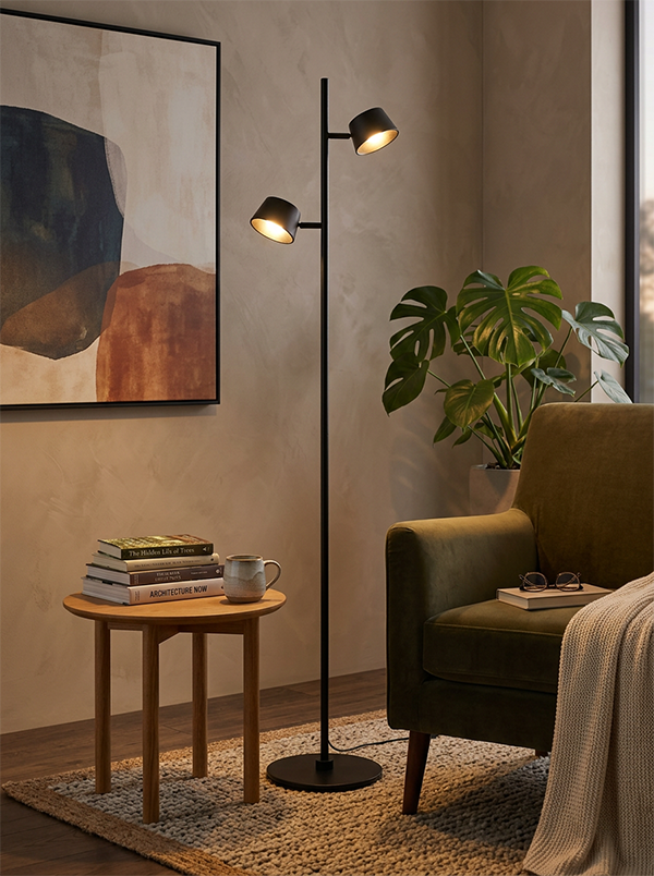 De lamp is voorzien van twee verstelbare lichtpunten, waardoor je het licht gericht kunt gebruiken waar je het nodig hebt. Perfect voor lezen of het creëren van extra sfeer in de zithoek.
