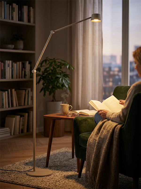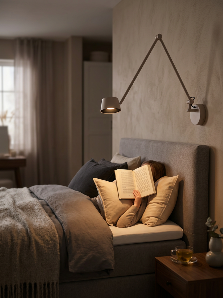 Een elegante en praktische leeslamp die comfort en sfeer moeiteloos combineert.