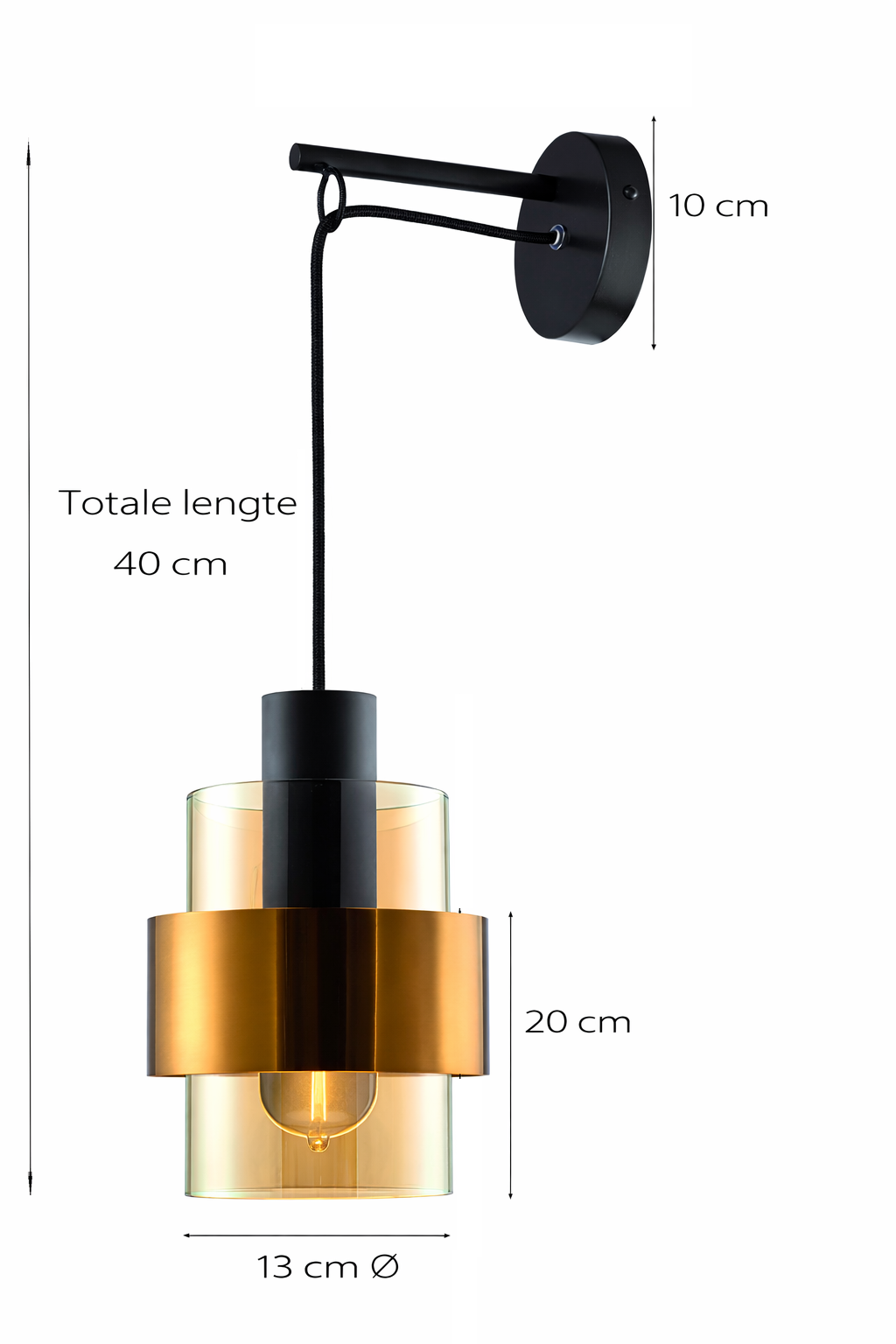 Wandlamp Chiasso – Zwart / Goud / Amber Glas