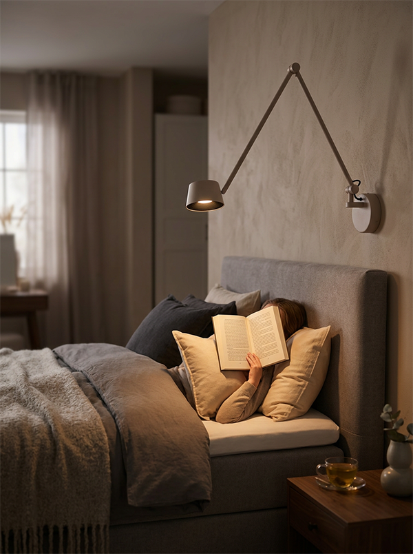 De Cugino wandlamp van Freelight is een moderne en veelzijdige wandlamp / leeslamp met een strak en functioneel design. De zachte crème (zand) kleur geeft de lamp een rustige en elegante uitstraling die perfect past in een modern, Scandinavisch of minimalistisch interieur. Ideaal naast het bed, de bank of in een leeshoek.