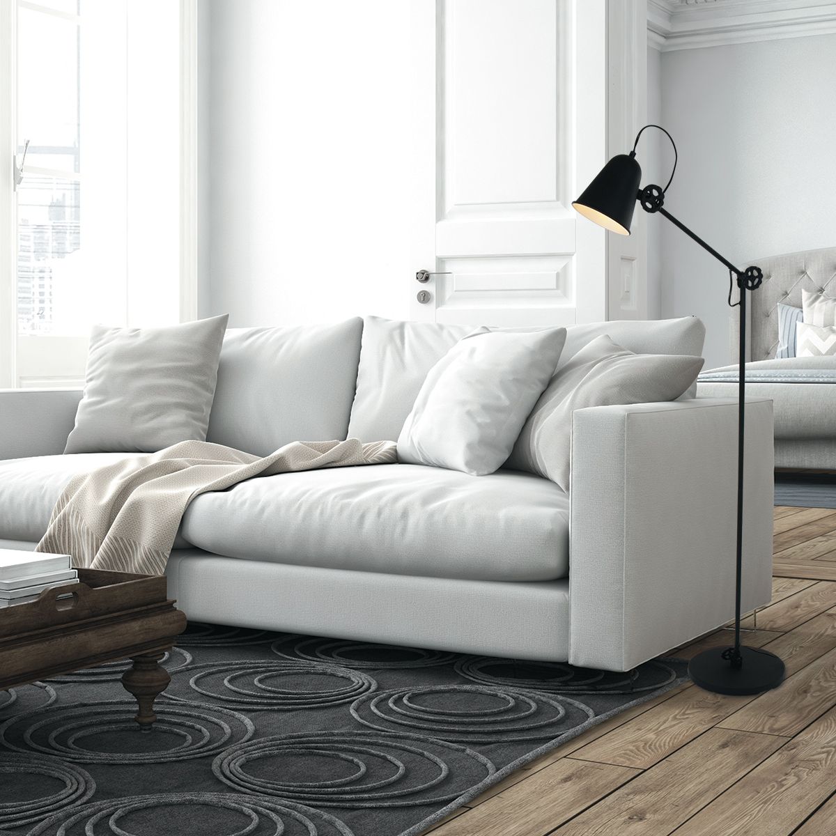 Praktische Scandinavische staandelamp uit de Dolphin serie. De zwart met witte kleur is wat deze lamp een Scandinavische touch geeft, terwijl het ontwerp zorgt voor een industriële uitstraling. Draaibaar en kantelbaar voor de optimale lichtplaatsing. Beschikt over een E27 fitting.
