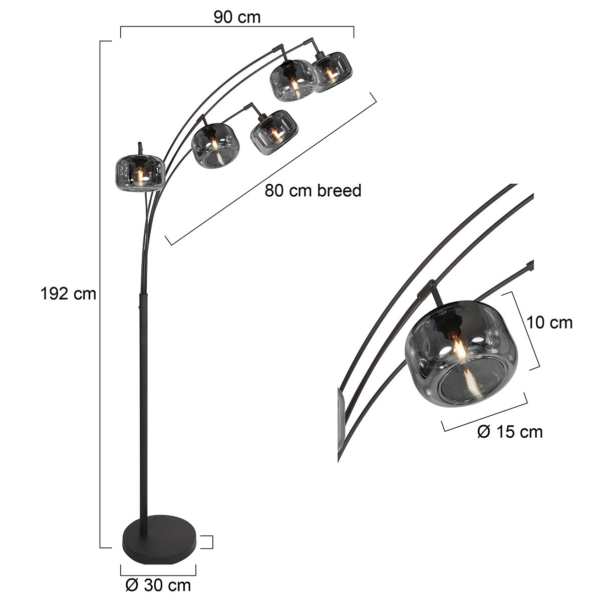 De Tenebris 4214ZW is een stijlvolle en moderne vloerlamp, perfect voor wie op zoek is naar sfeervolle en functionele verlichting. Met zijn vijf elegante armen en smoke kleurige glazen kappen zorgt deze lamp voor een warme, luxueuze uitstraling, waardoor hij een echte blikvanger is in elke ruimte.