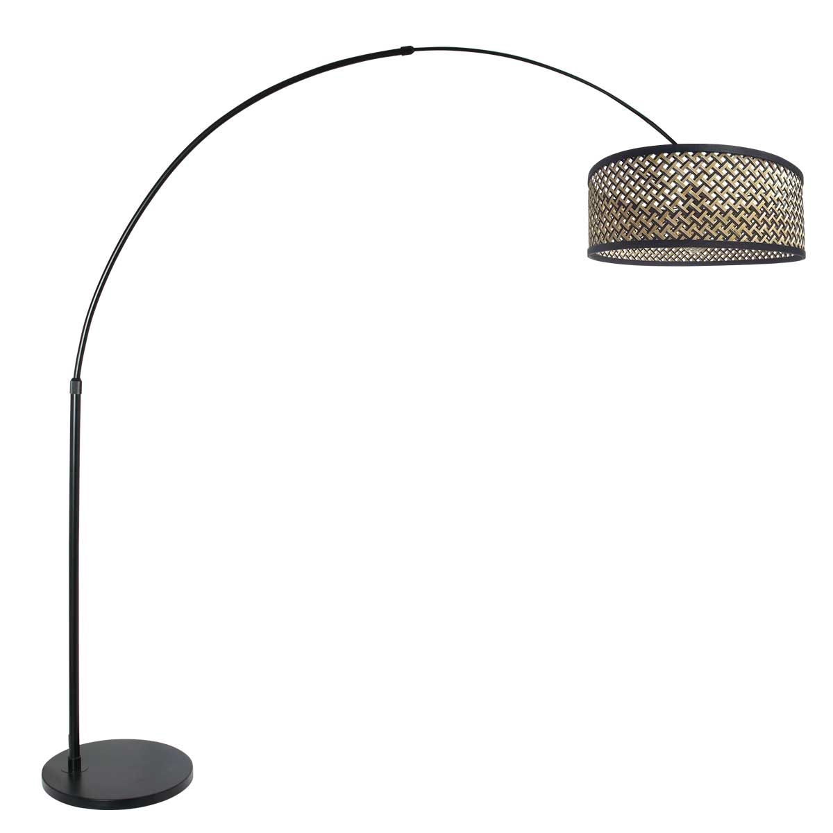 Zwarte vloerlamp / booglamp Sparkled Light 3788ZW met zwart blank bamboe kap