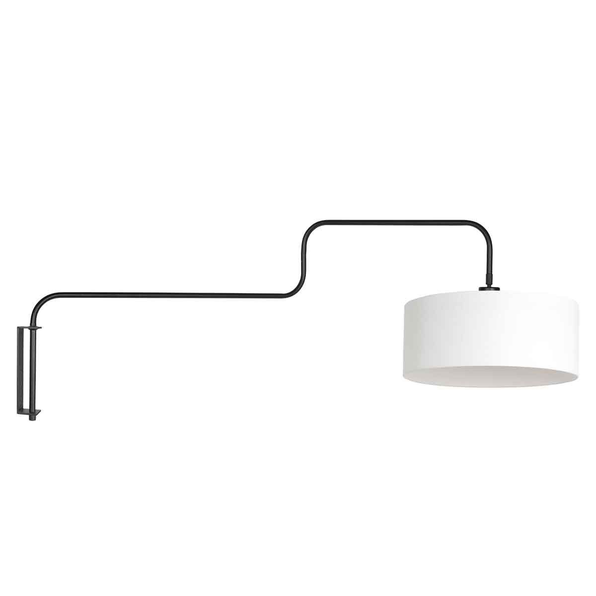 Zwarte Wandlamp Bloeba 4175ZW met wit grof linnen kap